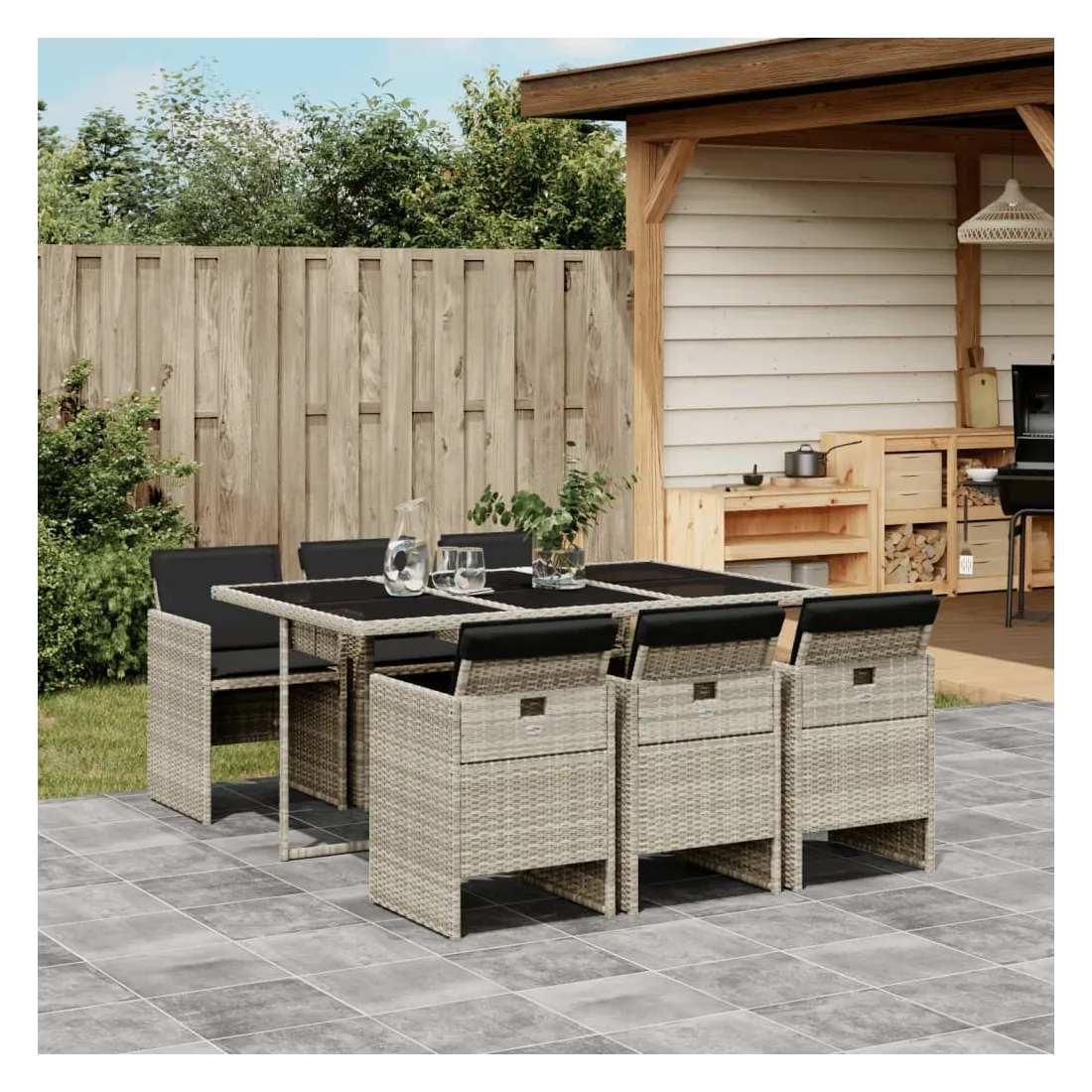 Cet ensemble de salle à manger de jardin est un excellent choix pour les repas en plein air ou pour vous détendre dans le jardin, dans l'arrière-cour ou sur la terrasse. Matériau durable : la résine tressée, également connue sous le nom de poly rotin, est un matériau synthétique solide et nécessitant peu d'entretien qui ressemble au rotin naturel. Il est léger, facile à nettoyer et couramment utilisé pour les meubles d'extérieur en raison de sa durabilité et de ses propriétés de résistance aux intempéries.Rangement compact : ces chaises sont dotées d'un dossier rabattable, ce qui permet de les ranger facilement sous la table. Une fois pliées, elles se rangent parfaitement sous la table, formant un cube peu encombrant. Expérience d'assise confortable : ce mobilier d'extérieur, doté de coussins épais, offre une expérience d'assise confortable.Housse amovible et lavable : ces coussins de siège sont dotés de housses amovibles pour un lavage et un entretien faciles.Dessus en verre : le dessus de la table d'extérieur est fabriqué en verre trempé solide et durable, ce qui le rend facile à nettoyer avec un chiffon humide et ajoute une touche d'élégance à votre espace extérieur. Bon à savoir : Pour que vos meubles d'extérieur restent beaux, nous vous recommandons de les protéger avec une housse imperméable.