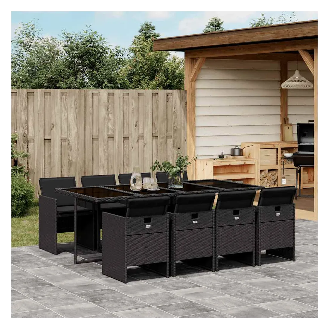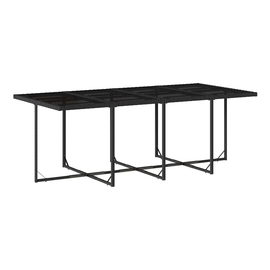 Cet ensemble de salle à manger de jardin est un excellent choix pour les repas en plein air ou pour vous détendre dans le jardin, dans l'arrière-cour ou sur la terrasse. Matériau durable : la résine tressée, également connue sous le nom de poly rotin, est un matériau synthétique solide et nécessitant peu d'entretien qui ressemble au rotin naturel. Il est léger, facile à nettoyer et couramment utilisé pour les meubles d'extérieur en raison de sa durabilité et de ses propriétés de résistance aux intempéries.Rangement compact : ces chaises sont dotées d'un dossier rabattable, ce qui permet de les ranger facilement sous la table. Une fois pliées, elles se rangent parfaitement sous la table, formant un cube peu encombrant. Expérience d'assise confortable : ce mobilier d'extérieur, doté de coussins épais, offre une expérience d'assise confortable.Housse amovible et lavable : ces coussins de siège sont dotés de housses amovibles pour un lavage et un entretien faciles.Dessus en verre : le dessus de la table d'extérieur est fabriqué en verre trempé solide et durable, ce qui le rend facile à nettoyer avec un chiffon humide et ajoute une touche d'élégance à votre espace extérieur. Bon à savoir : Pour que vos meubles d'extérieur restent beaux, nous vous recommandons de les protéger avec une housse imperméable.