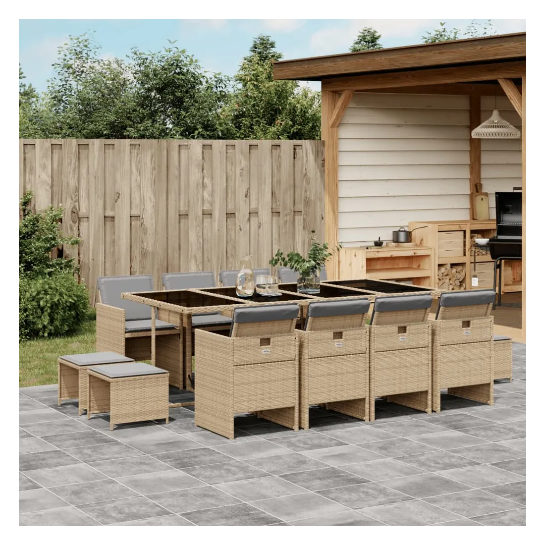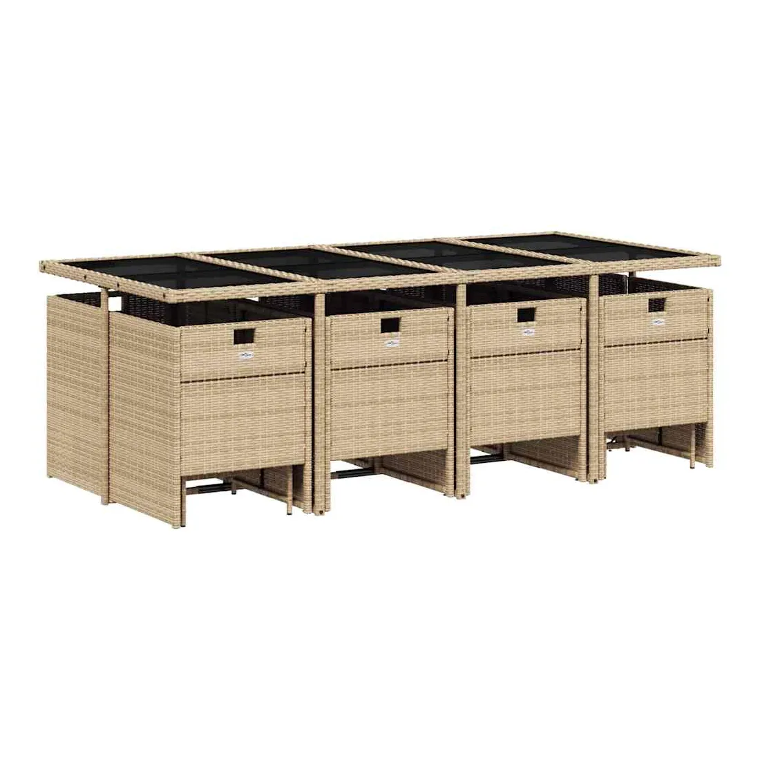 Cet ensemble de salle à manger de jardin est un excellent choix pour les repas en plein air ou pour vous détendre dans le jardin, dans l'arrière-cour ou sur la terrasse. Matériau durable : la résine tressée, également connue sous le nom de poly rotin, est un matériau synthétique solide et nécessitant peu d'entretien qui ressemble au rotin naturel. Il est léger, facile à nettoyer et couramment utilisé pour les meubles d'extérieur en raison de sa durabilité et de ses propriétés de résistance aux intempéries.Rangement compact : ces chaises sont dotées d'un dossier rabattable, ce qui permet de les ranger facilement sous la table. Une fois pliées, elles se rangent parfaitement sous la table, formant un cube peu encombrant. De plus, les tabourets peuvent également être rangés sous les chaises, maximisant encore davantage l'efficacité de l'espace. Expérience d'assise confortable : ce mobilier d'extérieur, doté de coussins épais, offre une expérience d'assise confortable.Housse amovible et lavable : ces coussins de siège sont dotés de housses amovibles pour un lavage et un entretien faciles.Dessus en verre : le dessus de la table d'extérieur est fabriqué en verre trempé solide et durable, ce qui le rend facile à nettoyer avec un chiffon humide et ajoute une touche d'élégance à votre espace extérieur. Bon à savoir : Pour que vos meubles d'extérieur restent beaux, nous vous recommandons de les protéger avec une housse imperméable.