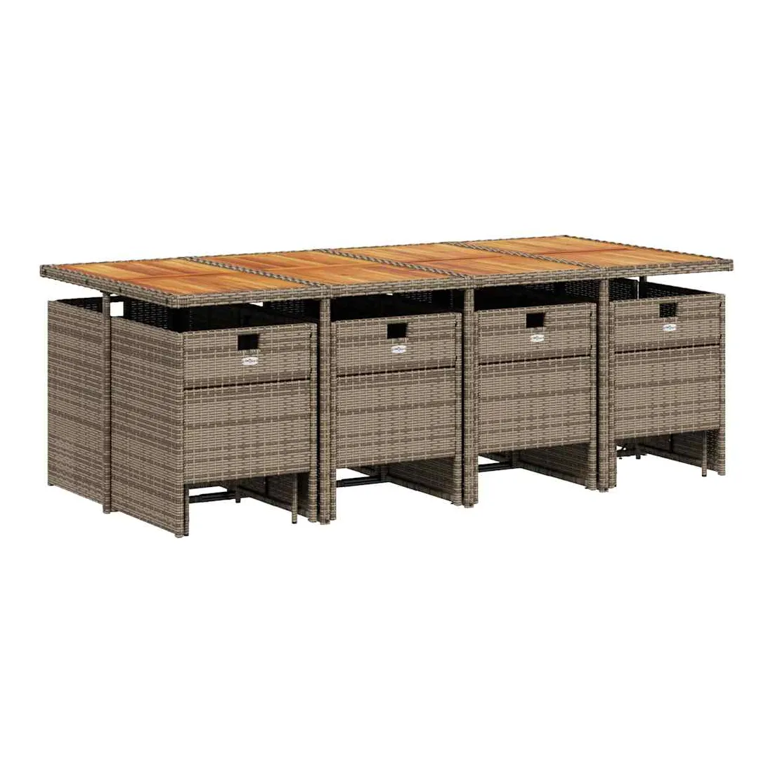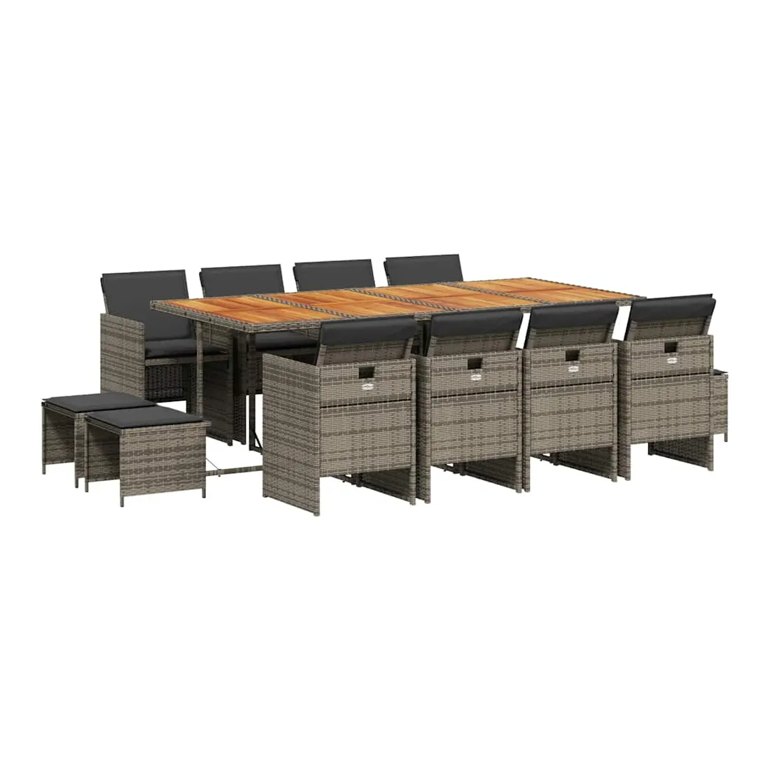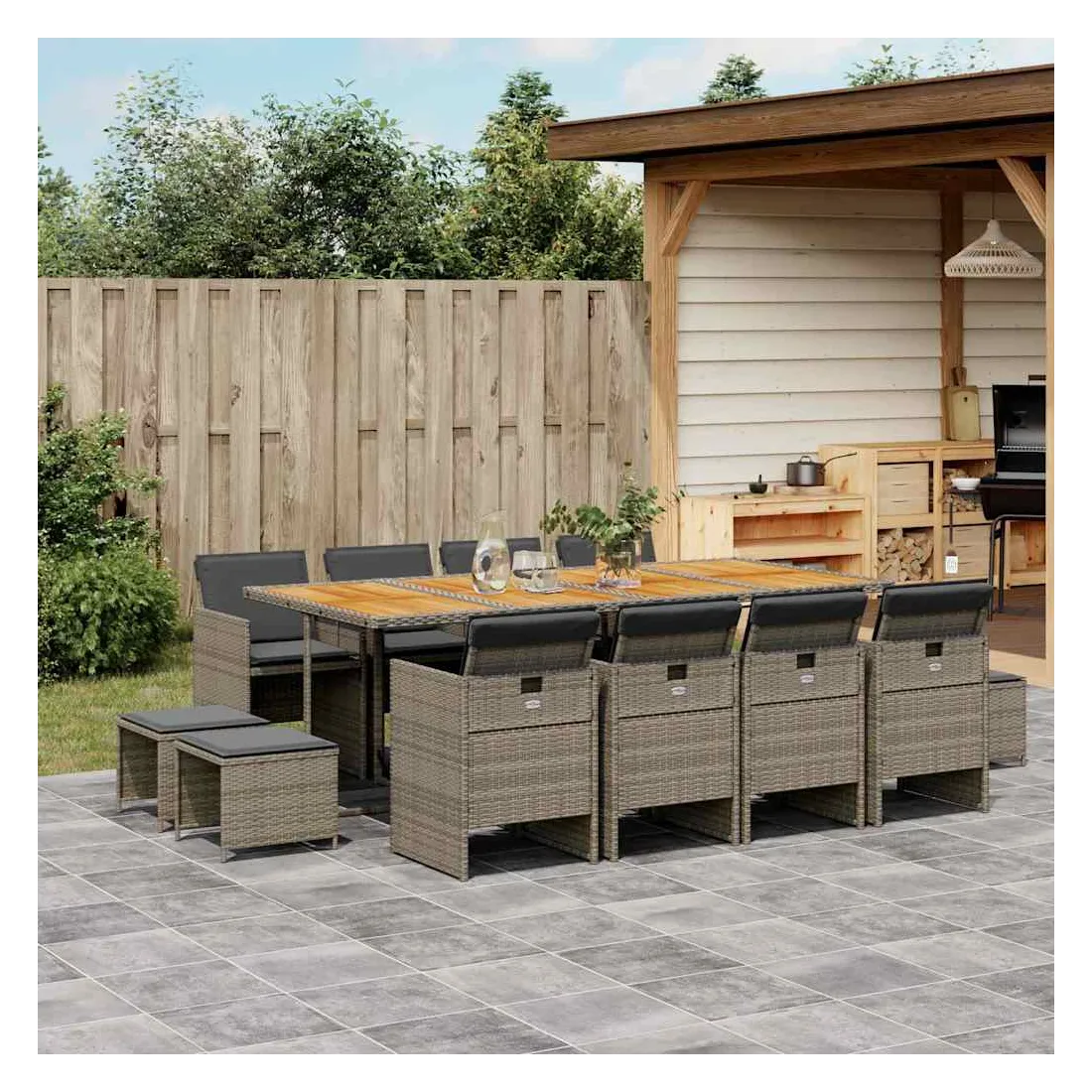Cet ensemble de salle à manger de jardin est un excellent choix pour les repas en plein air ou pour vous détendre dans le jardin, dans l'arrière-cour ou sur la terrasse. Matériau durable : la résine tressée, également connue sous le nom de poly rotin, est un matériau synthétique solide et nécessitant peu d'entretien qui ressemble au rotin naturel. Il est léger, facile à nettoyer et couramment utilisé pour les meubles d'extérieur en raison de sa durabilité et de ses propriétés de résistance aux intempéries.Rangement compact : ces chaises sont dotées d'un dossier rabattable, ce qui permet de les ranger facilement sous la table. Une fois pliées, elles se rangent parfaitement sous la table, formant un cube peu encombrant. De plus, les tabourets peuvent également être rangés sous les chaises, maximisant encore davantage l'efficacité de l'espace. Expérience d'assise confortable : ce mobilier d'extérieur, doté de coussins épais, offre une expérience d'assise confortable.Housse amovible et lavable : ces coussins de siège sont dotés de housses amovibles pour un lavage et un entretien faciles.Dessus stable et facile à nettoyer : cette table de jardin a un dessus en bois d'acacia robuste, durable et facile à nettoyer avec un chiffon humide. Bon à savoir : Pour que vos meubles d'extérieur restent beaux, nous vous recommandons de les protéger avec une housse imperméable.