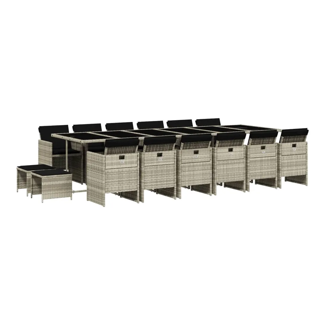 Cet ensemble de salle à manger de jardin est un excellent choix pour les repas en plein air ou pour vous détendre dans le jardin, dans l'arrière-cour ou sur la terrasse. Matériau durable : la résine tressée, également connue sous le nom de poly rotin, est un matériau synthétique solide et nécessitant peu d'entretien qui ressemble au rotin naturel. Il est léger, facile à nettoyer et couramment utilisé pour les meubles d'extérieur en raison de sa durabilité et de ses propriétés de résistance aux intempéries.Rangement compact : ces chaises sont dotées d'un dossier rabattable, ce qui permet de les ranger facilement sous la table. Une fois pliées, elles se rangent parfaitement sous la table, formant un cube peu encombrant. De plus, les tabourets peuvent également être rangés sous les chaises, maximisant encore davantage l'efficacité de l'espace. Expérience d'assise confortable : ce mobilier d'extérieur, doté de coussins épais, offre une expérience d'assise confortable.Housse amovible et lavable : ces coussins de siège sont dotés de housses amovibles pour un lavage et un entretien faciles.Dessus en verre : le dessus de la table d'extérieur est fabriqué en verre trempé solide et durable, ce qui le rend facile à nettoyer avec un chiffon humide et ajoute une touche d'élégance à votre espace extérieur. Bon à savoir : Pour que vos meubles d'extérieur restent beaux, nous vous recommandons de les protéger avec une housse imperméable.