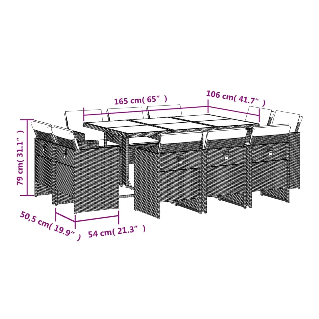 Cet ensemble de salle à manger de jardin est un excellent choix pour les repas en plein air ou pour vous détendre dans le jardin, dans l'arrière-cour ou sur la terrasse. Matériau durable : la résine tressée, également connue sous le nom de poly rotin, est un matériau synthétique solide et nécessitant peu d'entretien qui ressemble au rotin naturel. Il est léger, facile à nettoyer et couramment utilisé pour les meubles d'extérieur en raison de sa durabilité et de ses propriétés de résistance aux intempéries.Rangement compact : ces chaises sont dotées d'un dossier rabattable, ce qui permet de les ranger facilement sous la table. Une fois pliées, elles se rangent parfaitement sous la table, formant un cube peu encombrant. Expérience d'assise confortable : ce mobilier d'extérieur, doté de coussins épais, offre une expérience d'assise confortable.Housse amovible et lavable : ces coussins de siège sont dotés de housses amovibles pour un lavage et un entretien faciles.Dessus en verre : le dessus de la table d'extérieur est fabriqué en verre trempé solide et durable, ce qui le rend facile à nettoyer avec un chiffon humide et ajoute une touche d'élégance à votre espace extérieur. Bon à savoir : Pour que vos meubles d'extérieur restent beaux, nous vous recommandons de les protéger avec une housse imperméable.