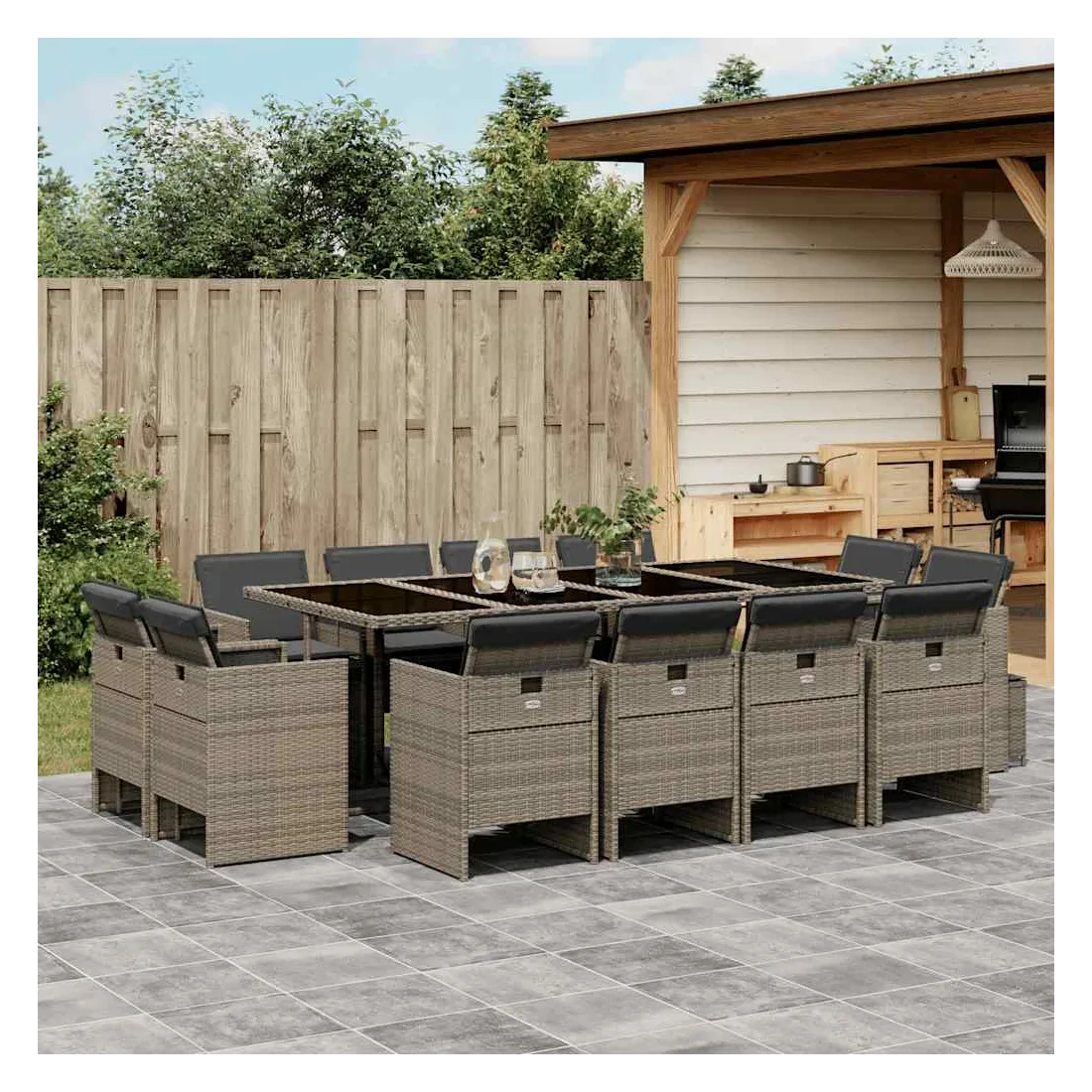 Cet ensemble de salle à manger de jardin est un excellent choix pour les repas en plein air ou pour vous détendre dans le jardin, dans l'arrière-cour ou sur la terrasse. Matériau durable : la résine tressée, également connue sous le nom de poly rotin, est un matériau synthétique solide et nécessitant peu d'entretien qui ressemble au rotin naturel. Il est léger, facile à nettoyer et couramment utilisé pour les meubles d'extérieur en raison de sa durabilité et de ses propriétés de résistance aux intempéries.Rangement compact : ces chaises sont dotées d'un dossier rabattable, ce qui permet de les ranger facilement sous la table. Une fois pliées, elles se rangent parfaitement sous la table, formant un cube peu encombrant. Expérience d'assise confortable : ce mobilier d'extérieur, doté de coussins épais, offre une expérience d'assise confortable.Housse amovible et lavable : ces coussins de siège sont dotés de housses amovibles pour un lavage et un entretien faciles.Dessus en verre : le dessus de la table d'extérieur est fabriqué en verre trempé solide et durable, ce qui le rend facile à nettoyer avec un chiffon humide et ajoute une touche d'élégance à votre espace extérieur. Bon à savoir : Pour que vos meubles d'extérieur restent beaux, nous vous recommandons de les protéger avec une housse imperméable.