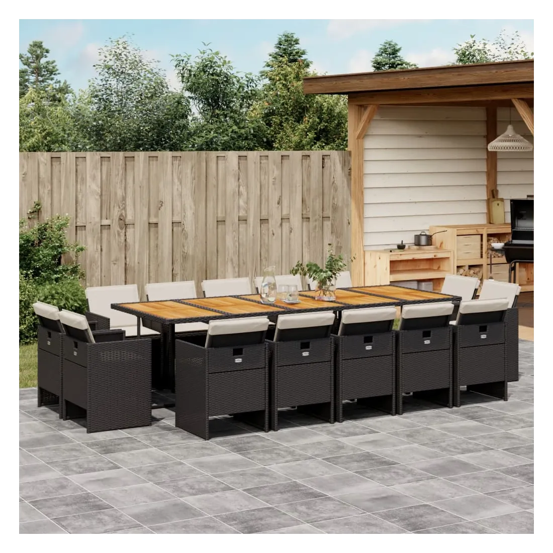 - Matériau : résine tressée, acier enduit de poudre, bois d'acacia massif avec finition à l'huile
