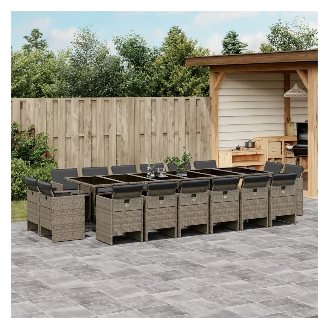 Cet ensemble de salle à manger de jardin est un excellent choix pour les repas en plein air ou pour vous détendre dans le jardin, dans l'arrière-cour ou sur la terrasse. Matériau durable : la résine tressée, également connue sous le nom de poly rotin, est un matériau synthétique solide et nécessitant peu d'entretien qui ressemble au rotin naturel. Il est léger, facile à nettoyer et couramment utilisé pour les meubles d'extérieur en raison de sa durabilité et de ses propriétés de résistance aux intempéries.Rangement compact : ces chaises sont dotées d'un dossier rabattable, ce qui permet de les ranger facilement sous la table. Une fois pliées, elles se rangent parfaitement sous la table, formant un cube peu encombrant. Expérience d'assise confortable : ce mobilier d'extérieur, doté de coussins épais, offre une expérience d'assise confortable.Housse amovible et lavable : ces coussins de siège sont dotés de housses amovibles pour un lavage et un entretien faciles.Dessus en verre : le dessus de la table d'extérieur est fabriqué en verre trempé solide et durable, ce qui le rend facile à nettoyer avec un chiffon humide et ajoute une touche d'élégance à votre espace extérieur. Bon à savoir : Pour que vos meubles d'extérieur restent beaux, nous vous recommandons de les protéger avec une housse imperméable.