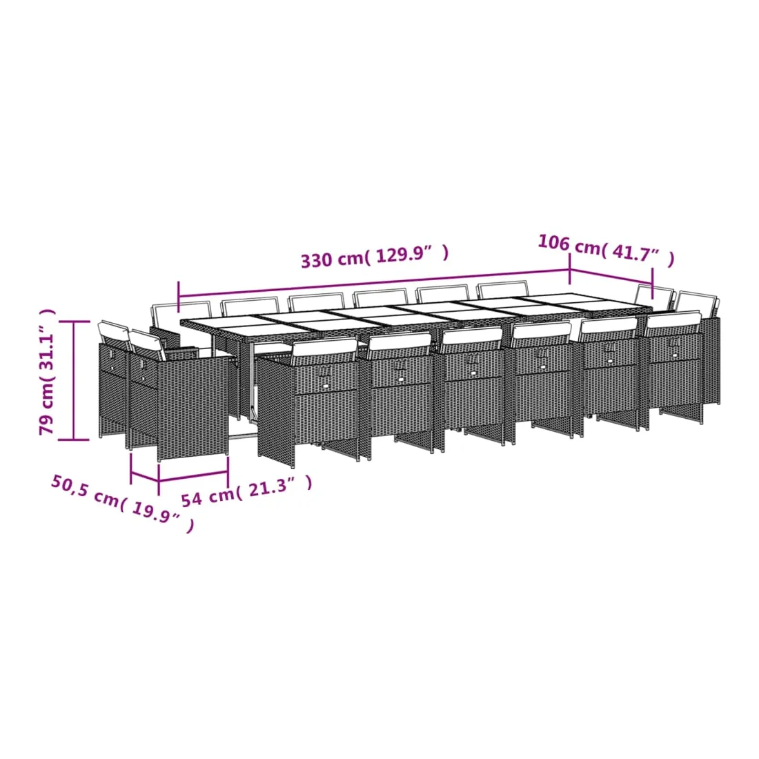 - Dimensions : 330 x 106 x 73 cm (L x l x H)