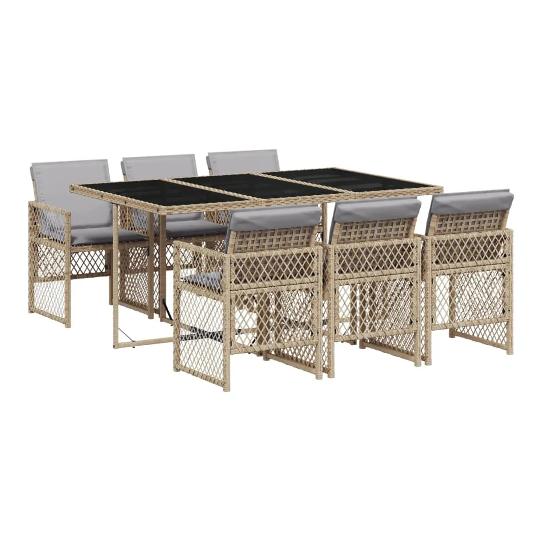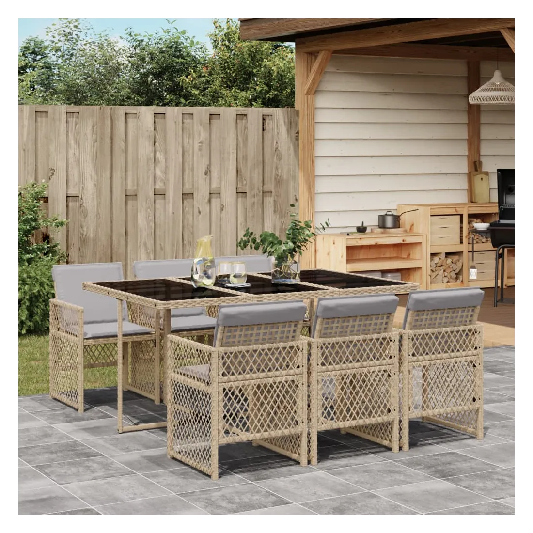 Cet ensemble de salle à manger de jardin est un excellent choix pour les repas en plein air ou pour vous détendre dans le jardin, l'arrière-cour ou le patio. Matériau durable : la résine tressée, également connue sous le nom de poly rotin, est un matériau synthétique solide et nécessitant peu d'entretien qui ressemble au rotin naturel. Elle est légère, facile à nettoyer et couramment utilisée pour les meubles d'extérieur en raison de sa durabilité et de ses propriétés de résistance aux intempéries. Dessus en verre : le dessus de la table d'extérieur est fabriqué en verre trempé solide et durable, ce qui le rend facile à nettoyer avec un chiffon humide et ajoute une touche d'élégance à votre espace extérieur. Rangement compact : ces chaises sont dotées d'un dossier rabattable, ce qui permet de les ranger facilement sous la table. Une fois pliées, elles se rangent parfaitement sous la table, formant un cube peu encombrant. Expérience d'assise confortable : ce mobilier d'extérieur, doté de coussins épais, offre une expérience d'assise confortable. Housse amovible et lavable : ces coussins de siège sont dotés de housses amovibles pour un lavage et un entretien faciles. Les housses de coussin de chaise ont un rabat à l'arrière pour une fixation facile aux chaises. Bon à savoir :Pour que vos meubles d'extérieur restent beaux, nous vous recommandons de les protéger avec une housse imperméable.