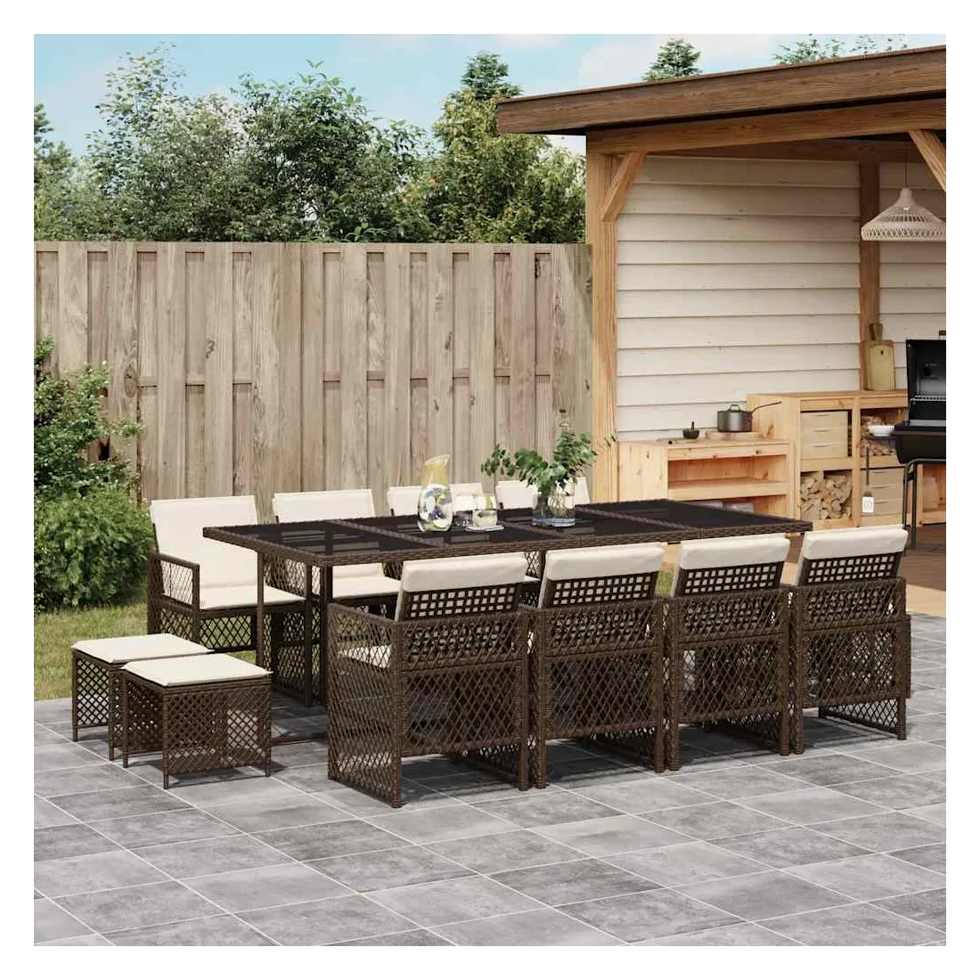 Cet ensemble de salle à manger de jardin est un excellent choix pour les repas en plein air ou pour vous détendre dans le jardin, l'arrière-cour ou le patio. Matériau durable : la résine tressée, également connue sous le nom de poly rotin, est un matériau synthétique solide et nécessitant peu d'entretien qui ressemble au rotin naturel. Elle est légère, facile à nettoyer et couramment utilisée pour les meubles d'extérieur en raison de sa durabilité et de ses propriétés de résistance aux intempéries. Dessus en verre : le dessus de la table d'extérieur est fabriqué en verre trempé solide et durable, ce qui le rend facile à nettoyer avec un chiffon humide et ajoute une touche d'élégance à votre espace extérieur. Rangement compact : ces chaises sont dotées d'un dossier rabattable, ce qui permet de les ranger facilement sous la table. Une fois pliées, elles se rangent parfaitement sous la table, formant un cube peu encombrant. De plus, les tabourets peuvent également être rangés sous les chaises, maximisant encore davantage l'efficacité de l'espace. Expérience d'assise confortable : ce mobilier d'extérieur, doté de coussins épais, offre une expérience d'assise confortable. Housse amovible et lavable : ces coussins de siège sont dotés de housses amovibles pour un lavage et un entretien faciles. Les housses de coussin de chaise ont un rabat à l'arrière pour une fixation facile aux chaises. Bon à savoir :Pour que vos meubles d'extérieur restent beaux, nous vous recommandons de les protéger avec une housse imperméable.