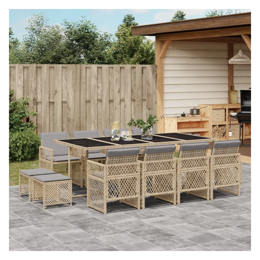 Cet ensemble de salle à manger de jardin est un excellent choix pour les repas en plein air ou pour vous détendre dans le jardin, l'arrière-cour ou le patio. Matériau durable : la résine tressée, également connue sous le nom de poly rotin, est un matériau synthétique solide et nécessitant peu d'entretien qui ressemble au rotin naturel. Elle est légère, facile à nettoyer et couramment utilisée pour les meubles d'extérieur en raison de sa durabilité et de ses propriétés de résistance aux intempéries. Dessus en verre : le dessus de la table d'extérieur est fabriqué en verre trempé solide et durable, ce qui le rend facile à nettoyer avec un chiffon humide et ajoute une touche d'élégance à votre espace extérieur. Rangement compact : ces chaises sont dotées d'un dossier rabattable, ce qui permet de les ranger facilement sous la table. Une fois pliées, elles se rangent parfaitement sous la table, formant un cube peu encombrant. De plus, les tabourets peuvent également être rangés sous les chaises, maximisant encore davantage l'efficacité de l'espace. Expérience d'assise confortable : ce mobilier d'extérieur, doté de coussins épais, offre une expérience d'assise confortable. Housse amovible et lavable : ces coussins de siège sont dotés de housses amovibles pour un lavage et un entretien faciles. Les housses de coussin de chaise ont un rabat à l'arrière pour une fixation facile aux chaises. Bon à savoir :Pour que vos meubles d'extérieur restent beaux, nous vous recommandons de les protéger avec une housse imperméable.