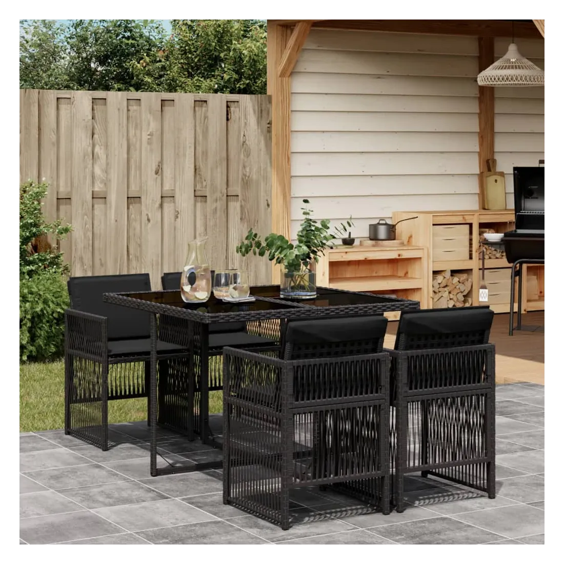 Cet ensemble de salle à manger de jardin est un excellent choix pour les repas en plein air ou pour vous détendre dans le jardin, dans l'arrière-cour ou sur la terrasse. Matériau durable : la résine tressée, également connue sous le nom de poly rotin, est un matériau synthétique solide et nécessitant peu d'entretien qui ressemble au rotin naturel. Il est léger, facile à nettoyer et couramment utilisé pour les meubles d'extérieur en raison de sa durabilité et de ses propriétés de résistance aux intempéries.Rangement compact : ces chaises sont dotées d'un dossier rabattable, ce qui permet de les ranger facilement sous la table. Une fois pliées, elles se rangent parfaitement sous la table, formant un cube peu encombrant.Expérience d'assise confortable : ce mobilier d'extérieur, doté de coussins épais, offre une expérience d'assise confortable.Housse amovible et lavable : ces coussins sont dotés de housses amovibles pour un lavage et un entretien faciles. Les housses de coussin ont un rabat à l'arrière pour une fixation facile aux dossiers.Dessus en verre : le dessus de la table d'extérieur est fabriqué en verre trempé solide et durable, ce qui le rend facile à nettoyer avec un chiffon humide et ajoute une touche d'élégance à votre espace extérieur. Bon à savoir : Pour que vos meubles d'extérieur restent beaux, nous vous recommandons de les protéger avec une housse imperméable.