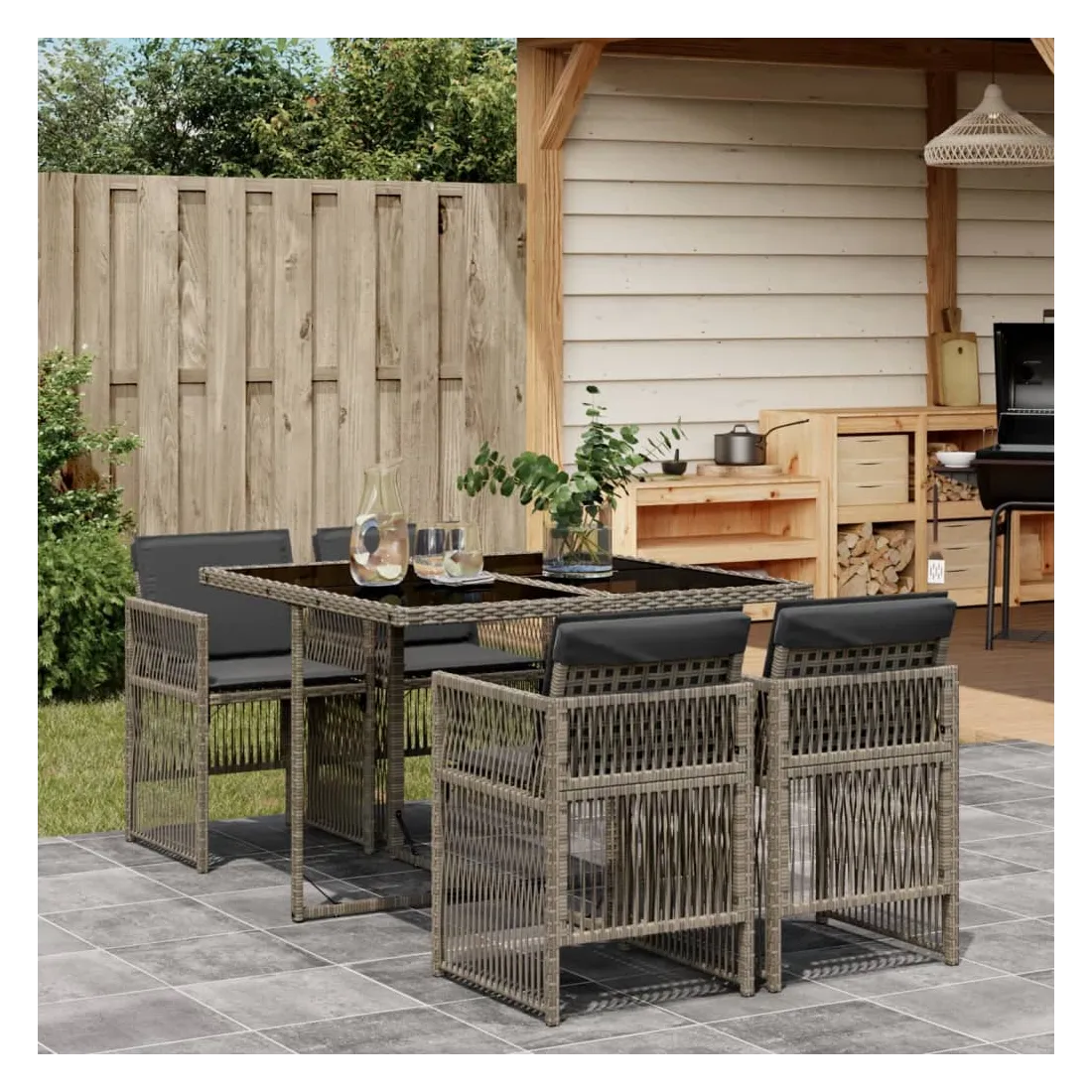 Cet ensemble de salle à manger de jardin est un excellent choix pour les repas en plein air ou pour vous détendre dans le jardin, dans l'arrière-cour ou sur la terrasse. Matériau durable : la résine tressée, également connue sous le nom de poly rotin, est un matériau synthétique solide et nécessitant peu d'entretien qui ressemble au rotin naturel. Il est léger, facile à nettoyer et couramment utilisé pour les meubles d'extérieur en raison de sa durabilité et de ses propriétés de résistance aux intempéries.Rangement compact : ces chaises sont dotées d'un dossier rabattable, ce qui permet de les ranger facilement sous la table. Une fois pliées, elles se rangent parfaitement sous la table, formant un cube peu encombrant.Expérience d'assise confortable : ce mobilier d'extérieur, doté de coussins épais, offre une expérience d'assise confortable.Housse amovible et lavable : ces coussins sont dotés de housses amovibles pour un lavage et un entretien faciles. Les housses de coussin ont un rabat à l'arrière pour une fixation facile aux dossiers.Dessus en verre : le dessus de la table d'extérieur est fabriqué en verre trempé solide et durable, ce qui le rend facile à nettoyer avec un chiffon humide et ajoute une touche d'élégance à votre espace extérieur. Bon à savoir : Pour que vos meubles d'extérieur restent beaux, nous vous recommandons de les protéger avec une housse imperméable.