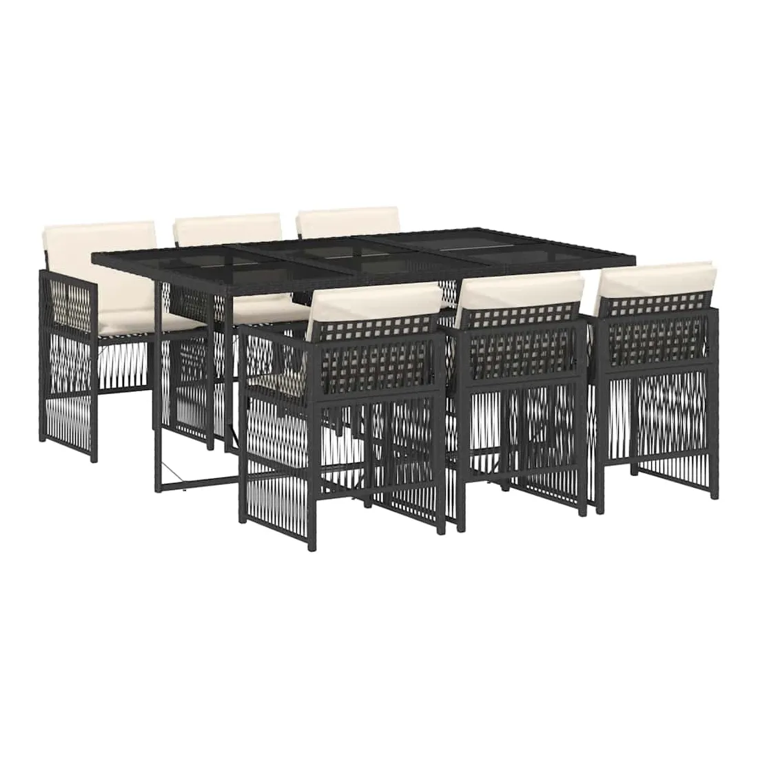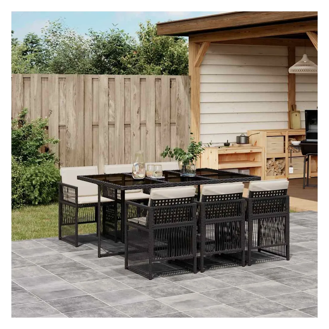 Cet ensemble de salle à manger de jardin est un excellent choix pour les repas en plein air ou pour vous détendre dans le jardin, dans l'arrière-cour ou sur la terrasse. Matériau durable : la résine tressée, également connue sous le nom de poly rotin, est un matériau synthétique solide et nécessitant peu d'entretien qui ressemble au rotin naturel. Il est léger, facile à nettoyer et couramment utilisé pour les meubles d'extérieur en raison de sa durabilité et de ses propriétés de résistance aux intempéries.Rangement compact : ces chaises sont dotées d'un dossier rabattable, ce qui permet de les ranger facilement sous la table. Une fois pliées, elles se rangent parfaitement sous la table, formant un cube peu encombrant.Expérience d'assise confortable : ce mobilier d'extérieur, doté de coussins épais, offre une expérience d'assise confortable.Housse amovible et lavable : ces coussins sont dotés de housses amovibles pour un lavage et un entretien faciles. Les housses de coussin ont un rabat à l'arrière pour une fixation facile aux dossiers.Dessus en verre : le dessus de la table d'extérieur est fabriqué en verre trempé solide et durable, ce qui le rend facile à nettoyer avec un chiffon humide et ajoute une touche d'élégance à votre espace extérieur. Bon à savoir : Pour que vos meubles d'extérieur restent beaux, nous vous recommandons de les protéger avec une housse imperméable.