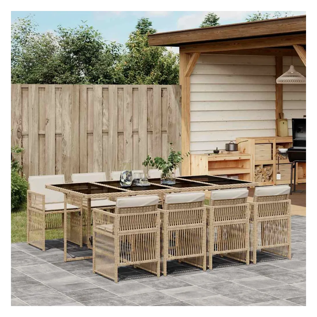 Cet ensemble de salle à manger de jardin est un excellent choix pour les repas en plein air ou pour vous détendre dans le jardin, dans l'arrière-cour ou sur la terrasse. Matériau durable : la résine tressée, également connue sous le nom de poly rotin, est un matériau synthétique solide et nécessitant peu d'entretien qui ressemble au rotin naturel. Il est léger, facile à nettoyer et couramment utilisé pour les meubles d'extérieur en raison de sa durabilité et de ses propriétés de résistance aux intempéries.Rangement compact : ces chaises sont dotées d'un dossier rabattable, ce qui permet de les ranger facilement sous la table. Une fois pliées, elles se rangent parfaitement sous la table, formant un cube peu encombrant.Expérience d'assise confortable : ce mobilier d'extérieur, doté de coussins épais, offre une expérience d'assise confortable.Housse amovible et lavable : ces coussins sont dotés de housses amovibles pour un lavage et un entretien faciles. Les housses de coussin ont un rabat à l'arrière pour une fixation facile aux dossiers.Dessus en verre : le dessus de la table d'extérieur est fabriqué en verre trempé solide et durable, ce qui le rend facile à nettoyer avec un chiffon humide et ajoute une touche d'élégance à votre espace extérieur. Bon à savoir : Pour que vos meubles d'extérieur restent beaux, nous vous recommandons de les protéger avec une housse imperméable.