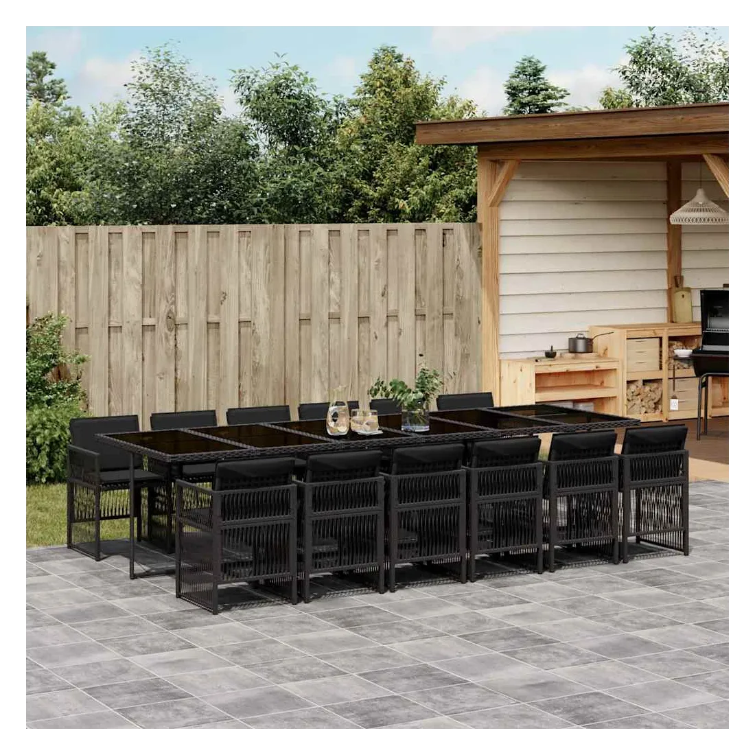 Cet ensemble de salle à manger de jardin est un excellent choix pour les repas en plein air ou pour vous détendre dans le jardin, dans l'arrière-cour ou sur la terrasse. Matériau durable : la résine tressée, également connue sous le nom de poly rotin, est un matériau synthétique solide et nécessitant peu d'entretien qui ressemble au rotin naturel. Il est léger, facile à nettoyer et couramment utilisé pour les meubles d'extérieur en raison de sa durabilité et de ses propriétés de résistance aux intempéries.Rangement compact : ces chaises sont dotées d'un dossier rabattable, ce qui permet de les ranger facilement sous la table. Une fois pliées, elles se rangent parfaitement sous la table, formant un cube peu encombrant.Expérience d'assise confortable : ce mobilier d'extérieur, doté de coussins épais, offre une expérience d'assise confortable.Housse amovible et lavable : ces coussins sont dotés de housses amovibles pour un lavage et un entretien faciles. Les housses de coussin ont un rabat à l'arrière pour une fixation facile aux dossiers.Dessus en verre : le dessus de la table d'extérieur est fabriqué en verre trempé solide et durable, ce qui le rend facile à nettoyer avec un chiffon humide et ajoute une touche d'élégance à votre espace extérieur. Bon à savoir : Pour que vos meubles d'extérieur restent beaux, nous vous recommandons de les protéger avec une housse imperméable.
