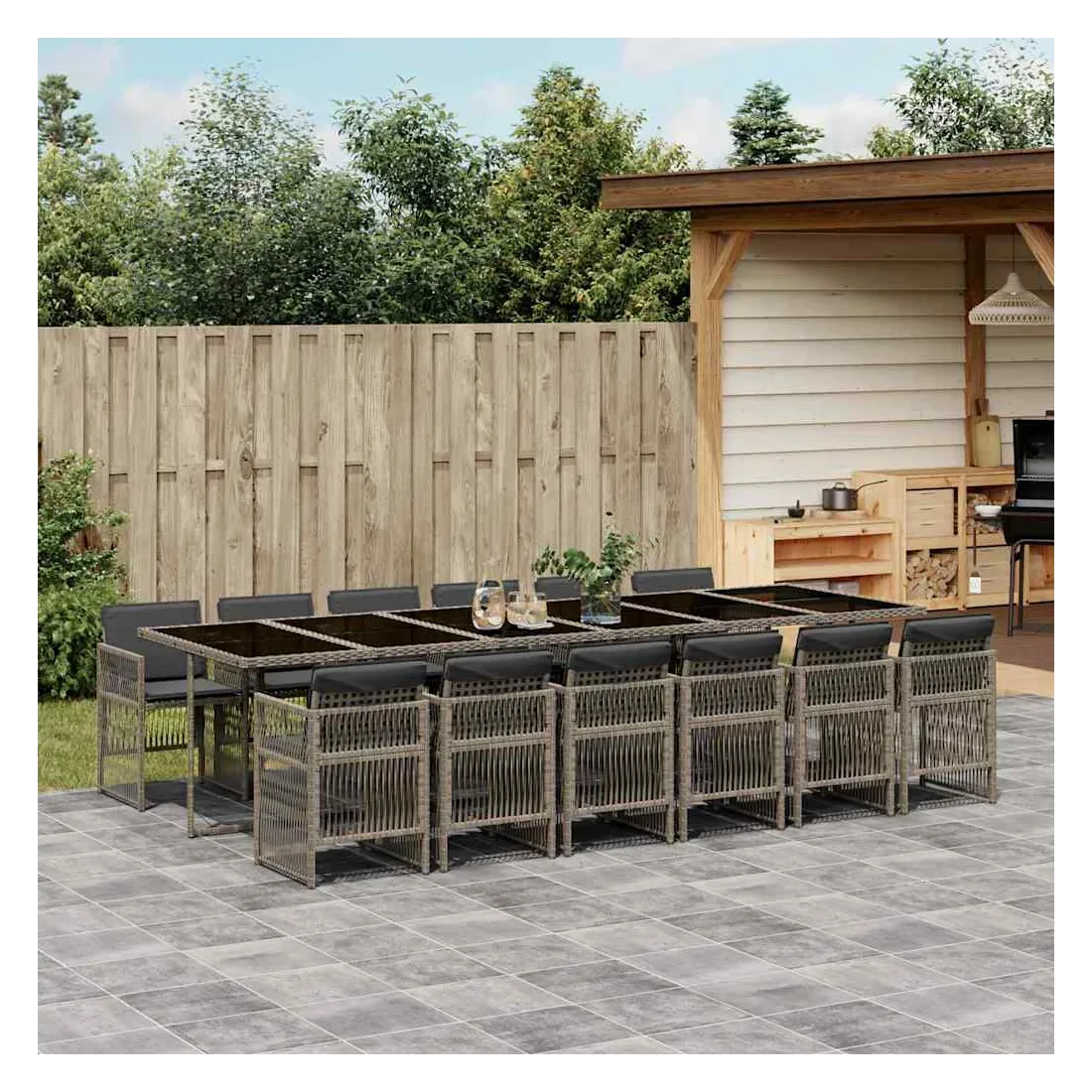 Cet ensemble de salle à manger de jardin est un excellent choix pour les repas en plein air ou pour vous détendre dans le jardin, dans l'arrière-cour ou sur la terrasse. Matériau durable : la résine tressée, également connue sous le nom de poly rotin, est un matériau synthétique solide et nécessitant peu d'entretien qui ressemble au rotin naturel. Il est léger, facile à nettoyer et couramment utilisé pour les meubles d'extérieur en raison de sa durabilité et de ses propriétés de résistance aux intempéries.Rangement compact : ces chaises sont dotées d'un dossier rabattable, ce qui permet de les ranger facilement sous la table. Une fois pliées, elles se rangent parfaitement sous la table, formant un cube peu encombrant.Expérience d'assise confortable : ce mobilier d'extérieur, doté de coussins épais, offre une expérience d'assise confortable.Housse amovible et lavable : ces coussins sont dotés de housses amovibles pour un lavage et un entretien faciles. Les housses de coussin ont un rabat à l'arrière pour une fixation facile aux dossiers.Dessus en verre : le dessus de la table d'extérieur est fabriqué en verre trempé solide et durable, ce qui le rend facile à nettoyer avec un chiffon humide et ajoute une touche d'élégance à votre espace extérieur. Bon à savoir : Pour que vos meubles d'extérieur restent beaux, nous vous recommandons de les protéger avec une housse imperméable.