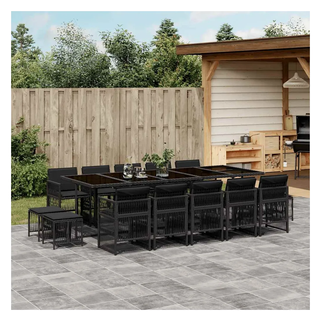 Cet ensemble de salle à manger de jardin est un excellent choix pour les repas en plein air ou pour vous détendre dans le jardin, dans l'arrière-cour ou sur la terrasse. Matériau durable : la résine tressée, également connue sous le nom de poly rotin, est un matériau synthétique solide et nécessitant peu d'entretien qui ressemble au rotin naturel. Il est léger, facile à nettoyer et couramment utilisé pour les meubles d'extérieur en raison de sa durabilité et de ses propriétés de résistance aux intempéries.Rangement compact : ces chaises sont dotées d'un dossier rabattable, ce qui permet de les ranger facilement sous la table. Une fois pliées, elles se rangent parfaitement sous la table, formant un cube peu encombrant. De plus, les tabourets peuvent également être rangés sous les chaises, maximisant encore davantage l'efficacité de l'espace.Expérience d'assise confortable : ce mobilier d'extérieur, doté de coussins épais, offre une expérience d'assise confortable.Housse amovible et lavable : ces coussins sont dotés de housses amovibles pour un lavage et un entretien faciles. Les housses de coussin ont un rabat à l'arrière pour une fixation facile aux dossiers.Dessus en verre : le dessus de la table d'extérieur est fabriqué en verre trempé solide et durable, ce qui le rend facile à nettoyer avec un chiffon humide et ajoute une touche d'élégance à votre espace extérieur. Bon à savoir : Pour que vos meubles d'extérieur restent beaux, nous vous recommandons de les protéger avec une housse imperméable.