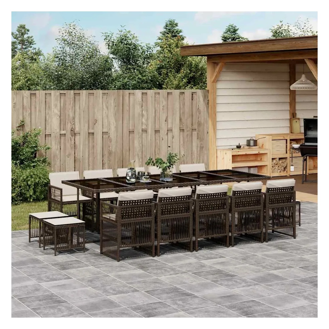 Cet ensemble de salle à manger de jardin est un excellent choix pour les repas en plein air ou pour vous détendre dans le jardin, dans l'arrière-cour ou sur la terrasse. Matériau durable : la résine tressée, également connue sous le nom de poly rotin, est un matériau synthétique solide et nécessitant peu d'entretien qui ressemble au rotin naturel. Il est léger, facile à nettoyer et couramment utilisé pour les meubles d'extérieur en raison de sa durabilité et de ses propriétés de résistance aux intempéries.Rangement compact : ces chaises sont dotées d'un dossier rabattable, ce qui permet de les ranger facilement sous la table. Une fois pliées, elles se rangent parfaitement sous la table, formant un cube peu encombrant. De plus, les tabourets peuvent également être rangés sous les chaises, maximisant encore davantage l'efficacité de l'espace.Expérience d'assise confortable : ce mobilier d'extérieur, doté de coussins épais, offre une expérience d'assise confortable.Housse amovible et lavable : ces coussins sont dotés de housses amovibles pour un lavage et un entretien faciles. Les housses de coussin ont un rabat à l'arrière pour une fixation facile aux dossiers.Dessus en verre : le dessus de la table d'extérieur est fabriqué en verre trempé solide et durable, ce qui le rend facile à nettoyer avec un chiffon humide et ajoute une touche d'élégance à votre espace extérieur. Bon à savoir : Pour que vos meubles d'extérieur restent beaux, nous vous recommandons de les protéger avec une housse imperméable.