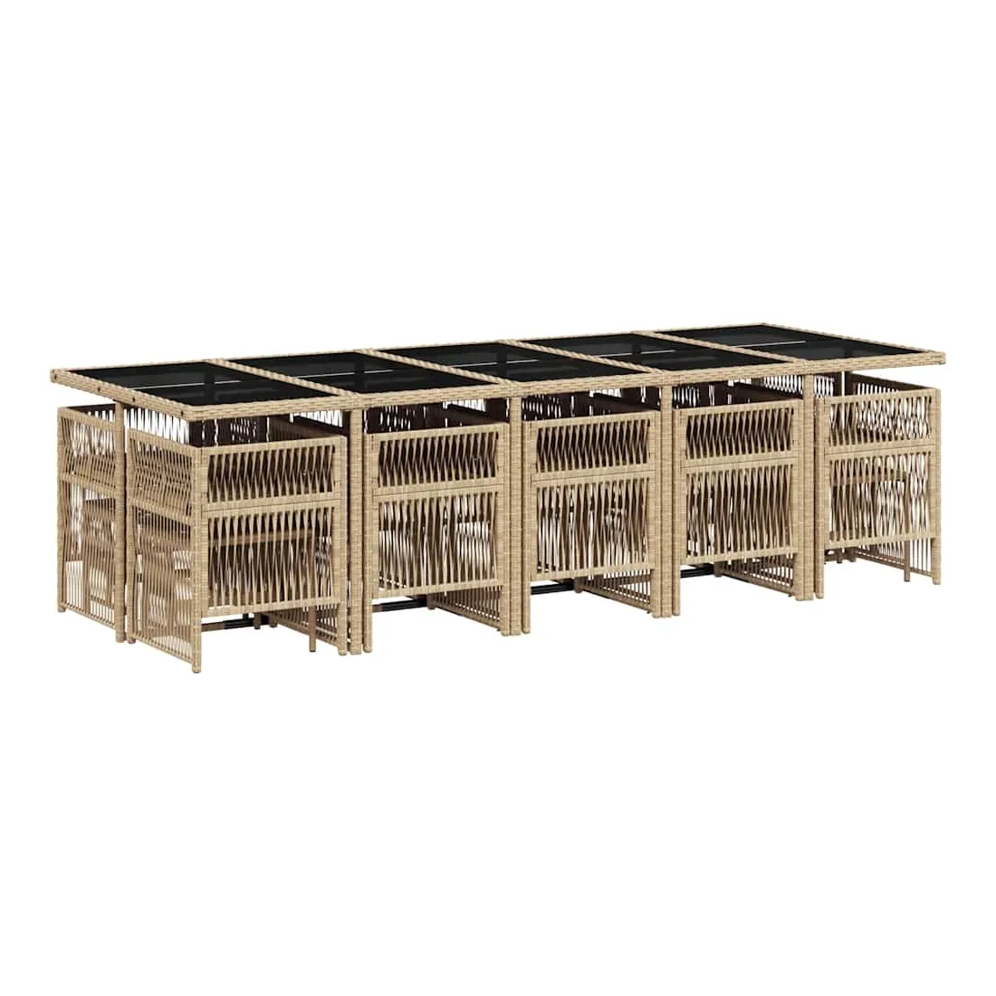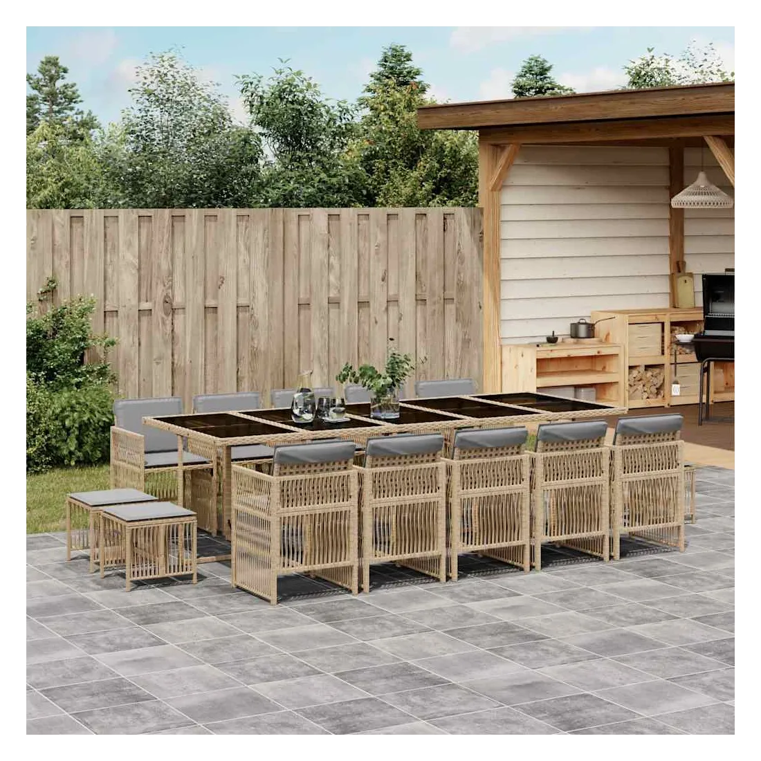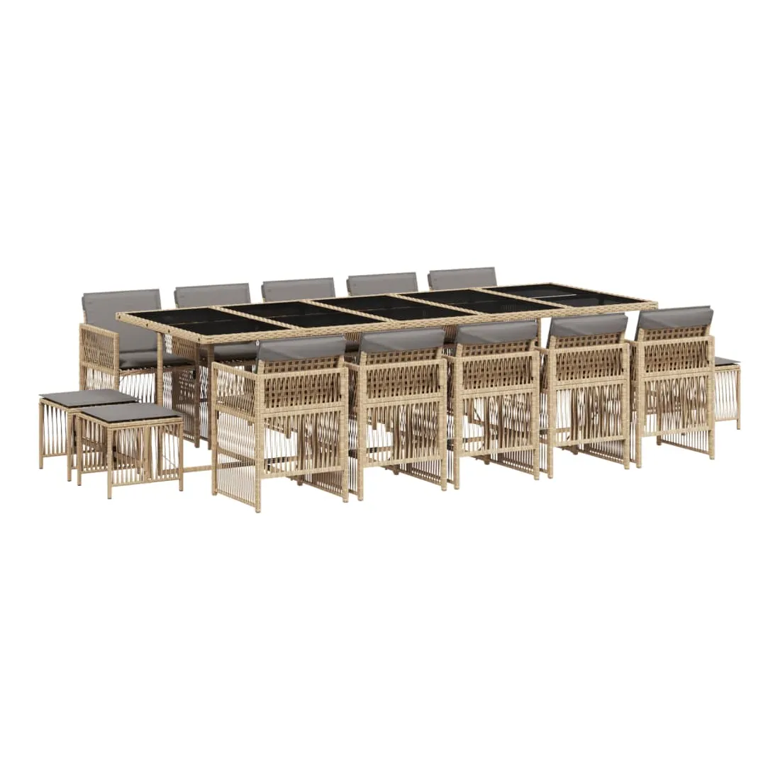 Cet ensemble de salle à manger de jardin est un excellent choix pour les repas en plein air ou pour vous détendre dans le jardin, dans l'arrière-cour ou sur la terrasse. Matériau durable : la résine tressée, également connue sous le nom de poly rotin, est un matériau synthétique solide et nécessitant peu d'entretien qui ressemble au rotin naturel. Il est léger, facile à nettoyer et couramment utilisé pour les meubles d'extérieur en raison de sa durabilité et de ses propriétés de résistance aux intempéries.Rangement compact : ces chaises sont dotées d'un dossier rabattable, ce qui permet de les ranger facilement sous la table. Une fois pliées, elles se rangent parfaitement sous la table, formant un cube peu encombrant. De plus, les tabourets peuvent également être rangés sous les chaises, maximisant encore davantage l'efficacité de l'espace.Expérience d'assise confortable : ce mobilier d'extérieur, doté de coussins épais, offre une expérience d'assise confortable.Housse amovible et lavable : ces coussins sont dotés de housses amovibles pour un lavage et un entretien faciles. Les housses de coussin ont un rabat à l'arrière pour une fixation facile aux dossiers.Dessus en verre : le dessus de la table d'extérieur est fabriqué en verre trempé solide et durable, ce qui le rend facile à nettoyer avec un chiffon humide et ajoute une touche d'élégance à votre espace extérieur. Bon à savoir : Pour que vos meubles d'extérieur restent beaux, nous vous recommandons de les protéger avec une housse imperméable.