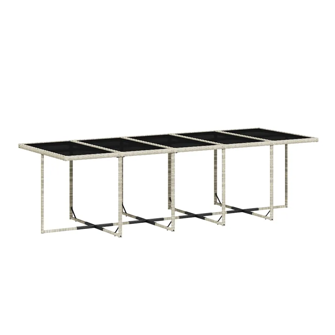 Cet ensemble de salle à manger de jardin est un excellent choix pour les repas en plein air ou pour vous détendre dans le jardin, dans l'arrière-cour ou sur la terrasse. Matériau durable : la résine tressée, également connue sous le nom de poly rotin, est un matériau synthétique solide et nécessitant peu d'entretien qui ressemble au rotin naturel. Il est léger, facile à nettoyer et couramment utilisé pour les meubles d'extérieur en raison de sa durabilité et de ses propriétés de résistance aux intempéries.Rangement compact : ces chaises sont dotées d'un dossier rabattable, ce qui permet de les ranger facilement sous la table. Une fois pliées, elles se rangent parfaitement sous la table, formant un cube peu encombrant.Expérience d'assise confortable : ce mobilier d'extérieur, doté de coussins épais, offre une expérience d'assise confortable.Housse amovible et lavable : ces coussins sont dotés de housses amovibles pour un lavage et un entretien faciles. Les housses de coussin ont un rabat à l'arrière pour une fixation facile aux dossiers.Dessus en verre : le dessus de la table d'extérieur est fabriqué en verre trempé solide et durable, ce qui le rend facile à nettoyer avec un chiffon humide et ajoute une touche d'élégance à votre espace extérieur. Bon à savoir : Pour que vos meubles d'extérieur restent beaux, nous vous recommandons de les protéger avec une housse imperméable.