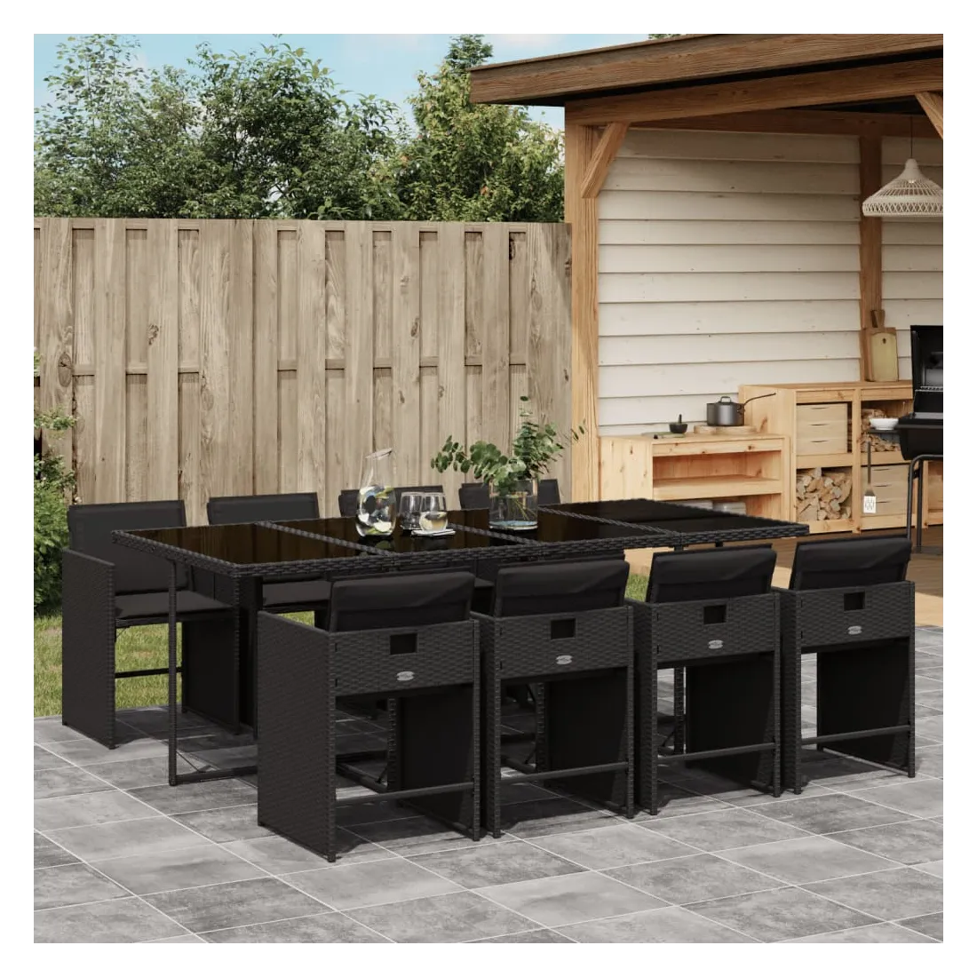 Cet ensemble de salle à manger de jardin est un excellent choix pour les repas en plein air ou pour vous détendre dans le jardin, dans l'arrière-cour ou sur la terrasse. Matériau durable : la résine tressée, également connue sous le nom de poly rotin, est un matériau synthétique solide et nécessitant peu d'entretien qui ressemble au rotin naturel. Il est léger, facile à nettoyer et couramment utilisé pour les meubles d'extérieur en raison de sa durabilité et de ses propriétés de résistance aux intempéries.Rangement compact : ces chaises sont dotées d'un dossier rabattable, ce qui permet de les ranger facilement sous la table. Une fois pliées, elles se rangent parfaitement sous la table, formant un cube peu encombrant.Expérience d'assise confortable : ce mobilier d'extérieur, doté de coussins épais, offre une expérience d'assise confortable.Housse amovible et lavable : ces coussins de siège sont dotés de housses amovibles pour un lavage et un entretien faciles. Les housses de coussin de chaise ont un rabat à l'arrière pour une fixation facile aux chaises.Dessus stable et facile à nettoyer : cette table de jardin est dotée d'un dessus en verre trempé robuste, durable et facile à nettoyer à l'aide d'un chiffon humide. Bon à savoir : Pour que vos meubles d'extérieur restent beaux, nous vous recommandons de les protéger avec une housse imperméable.