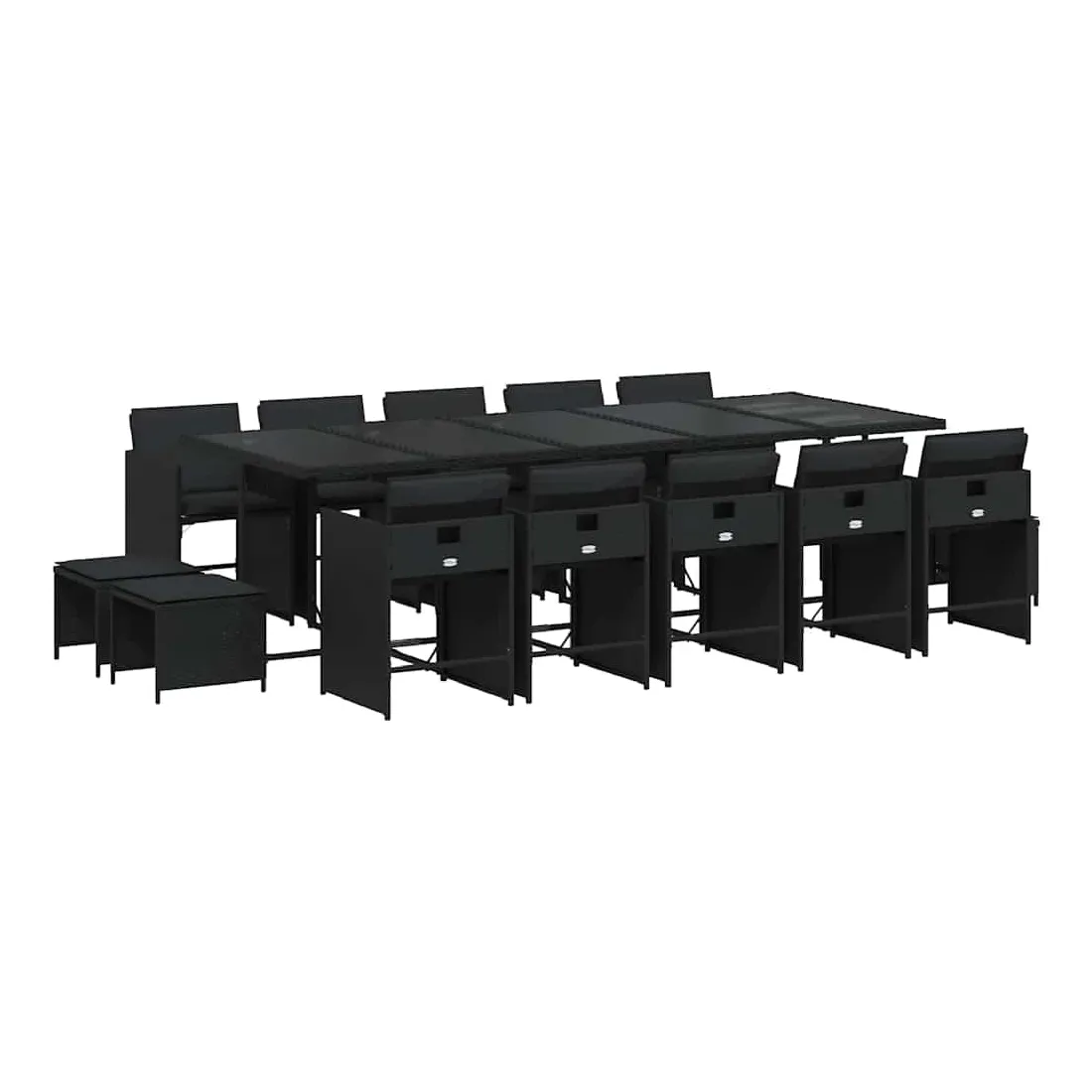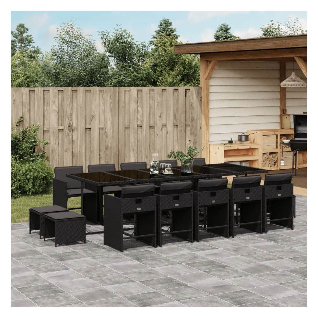 Cet ensemble de salle à manger de jardin est un excellent choix pour les repas en plein air ou pour vous détendre dans le jardin, dans l'arrière-cour ou sur la terrasse. Matériau durable : la résine tressée, également connue sous le nom de poly rotin, est un matériau synthétique solide et nécessitant peu d'entretien qui ressemble au rotin naturel. Il est léger, facile à nettoyer et couramment utilisé pour les meubles d'extérieur en raison de sa durabilité et de ses propriétés de résistance aux intempéries.Rangement compact : ces chaises sont dotées d'un dossier rabattable, ce qui permet de les ranger facilement sous la table. Une fois pliées, elles se rangent parfaitement sous la table, formant un cube peu encombrant. De plus, les tabourets peuvent également être rangés sous les chaises, maximisant encore davantage l'efficacité de l'espace.Expérience d'assise confortable : ce mobilier d'extérieur, doté de coussins épais, offre une expérience d'assise confortable.Housse amovible et lavable : ces coussins de siège sont dotés de housses amovibles pour un lavage et un entretien faciles. Les housses de coussin de chaise ont un rabat à l'arrière pour une fixation facile aux chaises.Dessus stable et facile à nettoyer : cette table de jardin est dotée d'un dessus en verre trempé robuste, durable et facile à nettoyer à l'aide d'un chiffon humide. Bon à savoir : Pour que vos meubles d'extérieur restent beaux, nous vous recommandons de les protéger avec une housse imperméable.