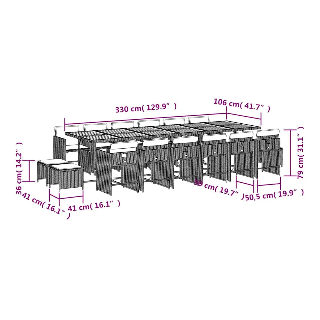 - Dimensions : 330 x 106 x 73 cm (L x l x H)
