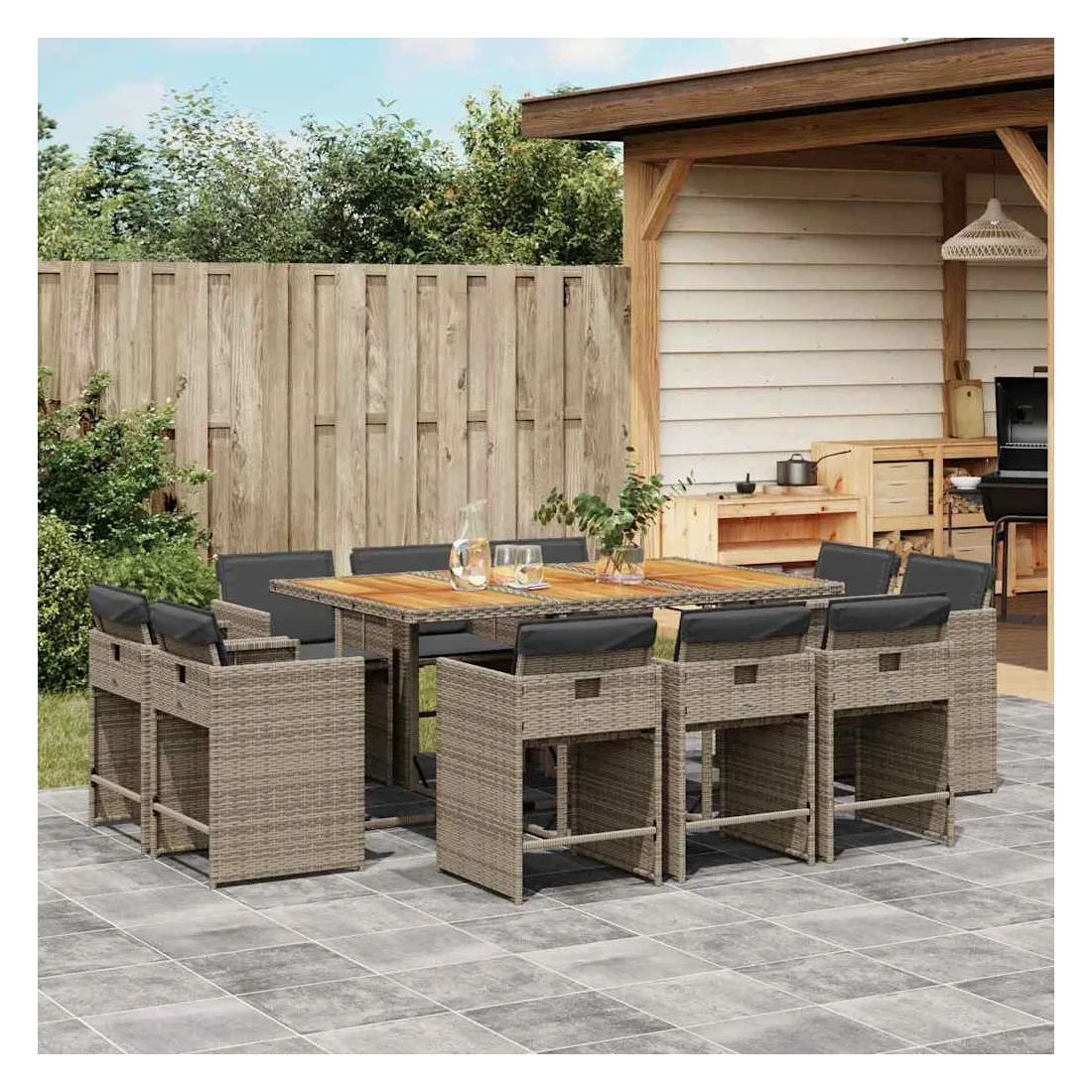 - Matériau : résine tressée, acier enduit de poudre, bois d'acacia massif