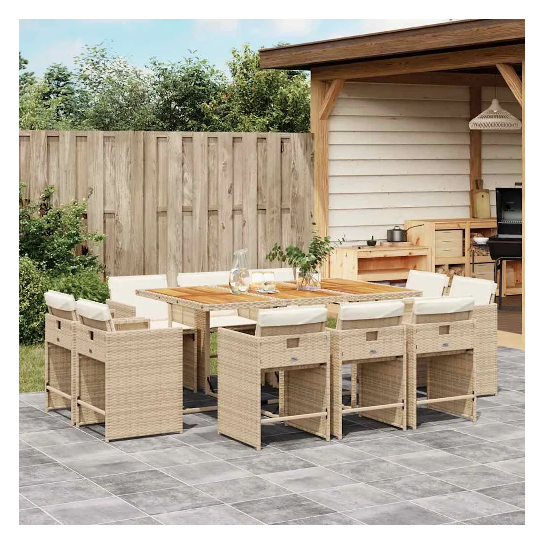 Cet ensemble de salle à manger de jardin est un excellent choix pour les repas en plein air ou pour vous détendre dans le jardin, dans l'arrière-cour ou sur la terrasse. Matériau durable : la résine tressée, également connue sous le nom de poly rotin, est un matériau synthétique solide et nécessitant peu d'entretien qui ressemble au rotin naturel. Il est léger, facile à nettoyer et couramment utilisé pour les meubles d'extérieur en raison de sa durabilité et de ses propriétés de résistance aux intempéries.Rangement compact : ces chaises sont dotées d'un dossier rabattable, ce qui permet de les ranger facilement sous la table. Une fois pliées, elles se rangent parfaitement sous la table, formant un cube peu encombrant.Expérience d'assise confortable : ce mobilier d'extérieur, doté de coussins bien rembourrés, offre une expérience d'assise confortable.Housse amovible et lavable : ces coussins de siège sont dotés de housses amovibles pour un lavage et un entretien faciles. Les housses de coussin de chaise ont un rabat à l'arrière pour une fixation facile aux chaises.Dessus stable et facile à nettoyer : cette table de jardin a un dessus en bois d'acacia robuste, durable et facile à nettoyer avec un chiffon humide. Bon à savoir : Pour que vos meubles d'extérieur restent beaux, nous vous recommandons de les protéger avec une housse imperméable.