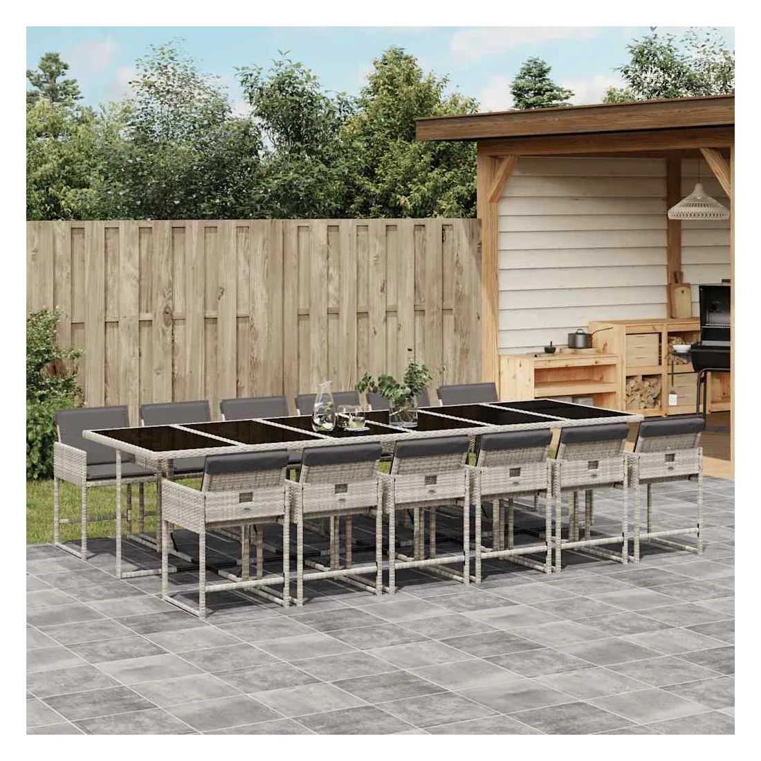 Cet ensemble de salle à manger de jardin est un excellent choix pour les repas en plein air ou pour vous détendre dans le jardin, dans l'arrière-cour ou sur la terrasse. Matériau durable : la résine tressée, également connue sous le nom de poly rotin, est un matériau synthétique solide et nécessitant peu d'entretien qui ressemble au rotin naturel. Il est léger, facile à nettoyer et couramment utilisé pour les meubles d'extérieur en raison de sa durabilité et de ses propriétés de résistance aux intempéries.Rangement compact : ces chaises sont dotées d'un dossier rabattable, ce qui permet de les ranger facilement sous la table. Une fois pliées, elles se rangent parfaitement sous la table, formant un cube peu encombrant.Expérience d'assise confortable : ce mobilier d'extérieur, doté de coussins épais, offre une expérience d'assise confortable.Housse amovible et lavable : ces coussins de siège sont dotés de housses amovibles pour un lavage et un entretien faciles. Les housses de coussin ont un rabat à l'arrière pour une fixation facile aux dossiers.Dessus en verre : le dessus de la table d'extérieur est fabriqué en verre trempé solide et durable, ce qui le rend facile à nettoyer avec un chiffon humide et ajoute une touche d'élégance à votre espace extérieur. Bon à savoir :Pour que vos meubles d'extérieur restent beaux, nous vous recommandons de les protéger avec une housse imperméable.