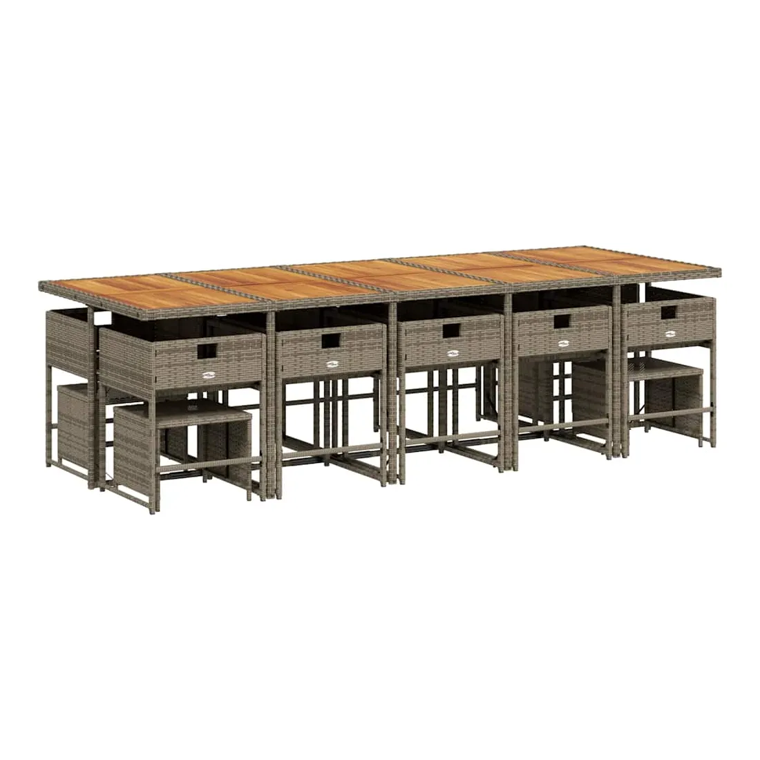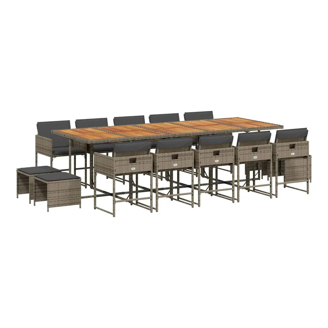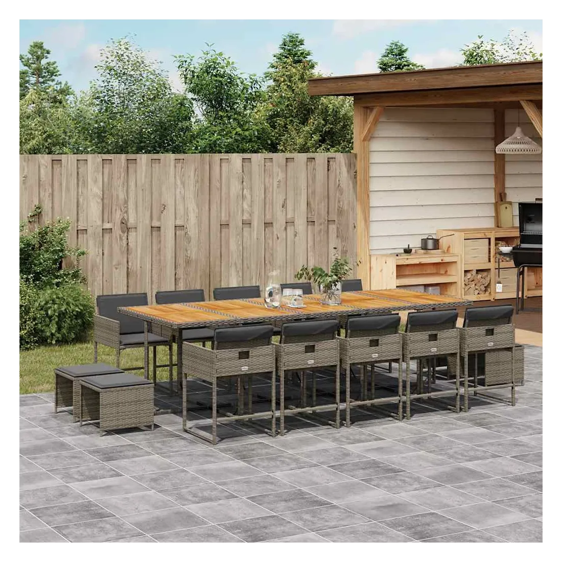 Cet ensemble de salle à manger de jardin est un excellent choix pour les repas en plein air ou pour vous détendre dans le jardin, dans l'arrière-cour ou sur la terrasse. Matériau durable : la résine tressée, également connue sous le nom de poly rotin, est un matériau synthétique solide et nécessitant peu d'entretien qui ressemble au rotin naturel. Il est léger, facile à nettoyer et couramment utilisé pour les meubles d'extérieur en raison de sa durabilité et de ses propriétés de résistance aux intempéries.Rangement compact : ces chaises sont dotées d'un dossier rabattable, ce qui permet de les ranger facilement sous la table. Une fois pliées, elles se rangent parfaitement sous la table, formant un cube peu encombrant. De plus, les tabourets peuvent également être rangés sous les chaises, maximisant encore davantage l'efficacité de l'espace.Expérience d'assise confortable : ce mobilier d'extérieur, doté de coussins épais, offre une expérience d'assise confortable.Housse amovible et lavable : ces coussins de siège sont dotés de housses amovibles pour un lavage et un entretien faciles. Les housses de coussin ont un rabat à l'arrière pour une fixation facile aux dossiers.Dessus stable et facile à nettoyer : cette table de jardin a un dessus en bois d'acacia robuste, durable et facile à nettoyer avec un chiffon humide. Bon à savoir : Pour que vos meubles d'extérieur restent beaux, nous vous recommandons de les protéger avec une housse imperméable.