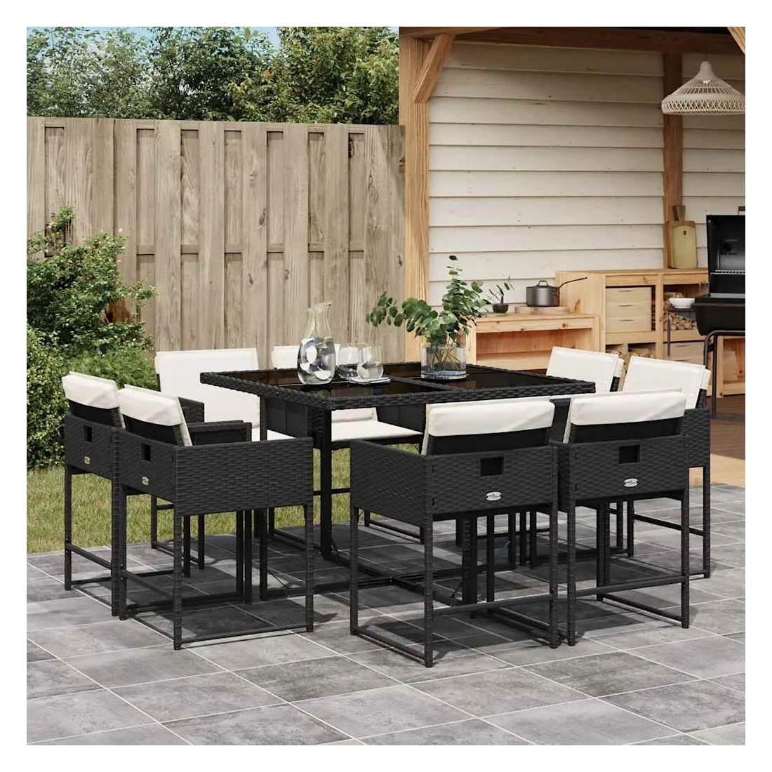 Cet ensemble de salle à manger de jardin est un excellent choix pour les repas en plein air ou pour vous détendre dans le jardin, l'arrière-cour ou le patio. Matériau durable : la résine tressée, également connue sous le nom de poly rotin, est un matériau synthétique solide et nécessitant peu d'entretien qui ressemble au rotin naturel. Il est léger, facile à nettoyer et couramment utilisé pour les meubles d'extérieur en raison de sa durabilité et de ses propriétés de résistance aux intempéries.Rangement compact : ces chaises sont dotées d'un dossier rabattable, ce qui permet de les ranger facilement sous la table. Une fois pliées, elles se rangent parfaitement sous la table, formant un cube peu encombrant.Expérience d'assise confortable : ce mobilier d'extérieur, doté de coussins épais, offre une expérience d'assise confortable.Housse amovible et lavable : ces coussins de siège sont dotés de housses amovibles pour un lavage et un entretien faciles. Les housses de coussin de chaise ont un rabat à l'arrière pour une fixation facile aux chaises.Dessus en verre : le dessus de la table de jardin est fabriqué en verre trempé solide et durable, ce qui le rend facile à nettoyer avec un chiffon humide et ajoute une touche d'élégance à votre espace extérieur. Bon à savoir :Pour que vos meubles d'extérieur restent beaux, nous vous recommandons de les protéger avec une housse imperméable.