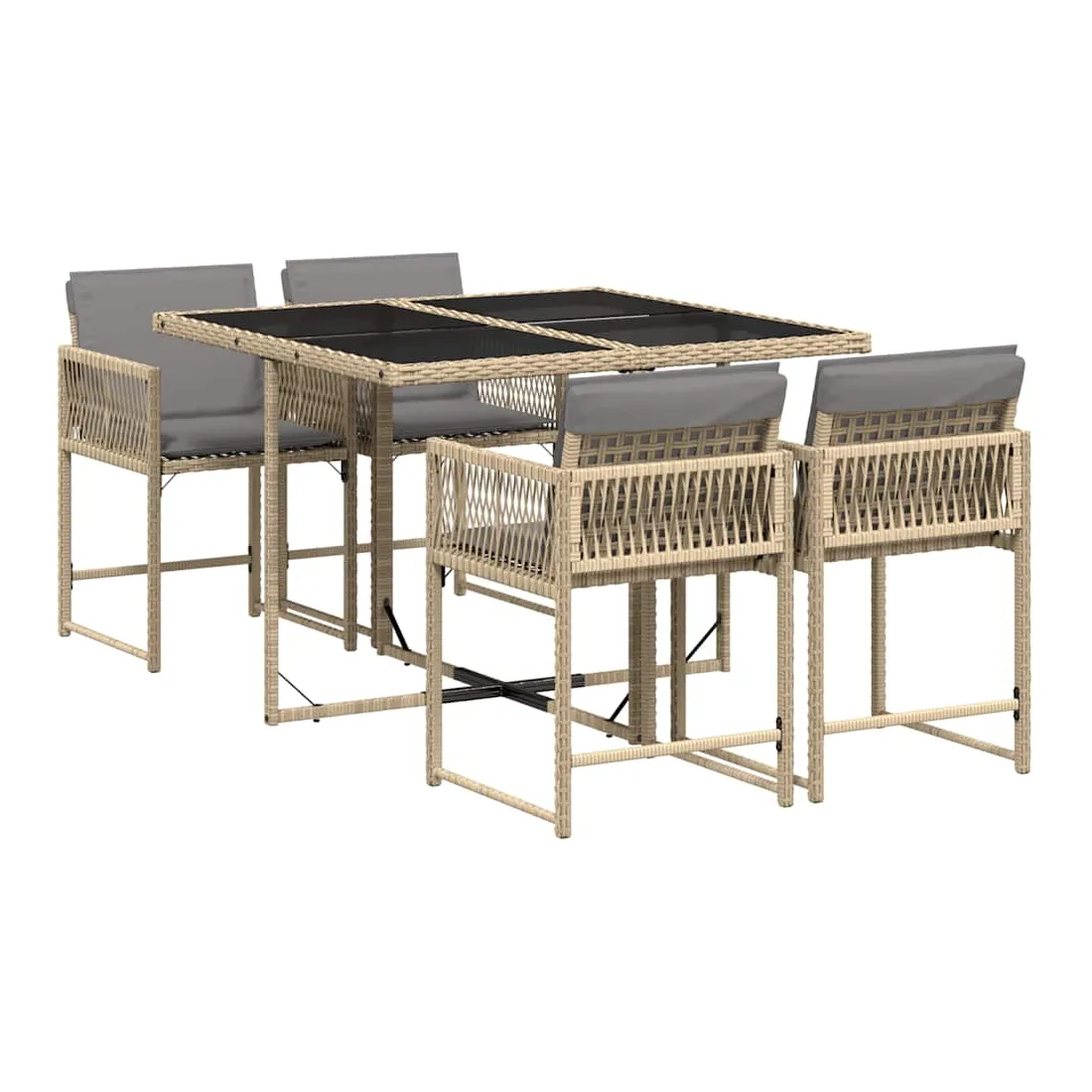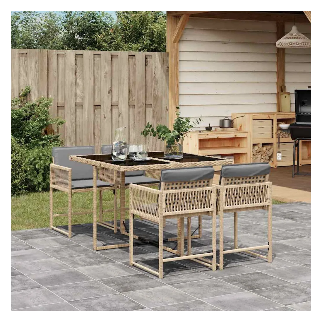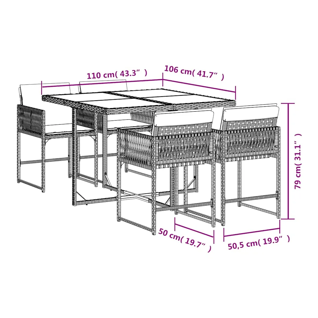 Cet ensemble de salle à manger de jardin est un excellent choix pour les repas en plein air ou pour vous détendre dans le jardin, dans l'arrière-cour ou sur la terrasse. Matériau durable : la résine tressée, également connue sous le nom de poly rotin, est un matériau synthétique solide et nécessitant peu d'entretien qui ressemble au rotin naturel. Il est léger, facile à nettoyer et couramment utilisé pour les meubles d'extérieur en raison de sa durabilité et de ses propriétés de résistance aux intempéries.Rangement compact : ces chaises sont dotées d'un dossier rabattable, ce qui permet de les ranger facilement sous la table. Une fois pliées, elles se rangent parfaitement sous la table, formant un cube peu encombrant.Expérience d'assise confortable : ce mobilier d'extérieur, doté de coussins épais, offre une expérience d'assise confortable.Housse amovible et lavable : ces coussins de siège sont dotés de housses amovibles pour un lavage et un entretien faciles. Les housses de coussin ont un rabat à l'arrière pour une fixation facile aux dossiers.Dessus en verre : le dessus de la table d'extérieur est fabriqué en verre trempé solide et durable, ce qui le rend facile à nettoyer avec un chiffon humide et ajoute une touche d'élégance à votre espace extérieur. Bon à savoir :Pour que vos meubles d'extérieur restent beaux, nous vous recommandons de les protéger avec une housse imperméable.