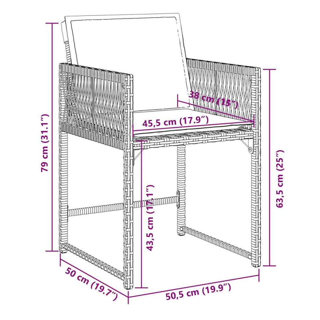 - Dimensions du siège : 45,5 x 38 cm (l x P)