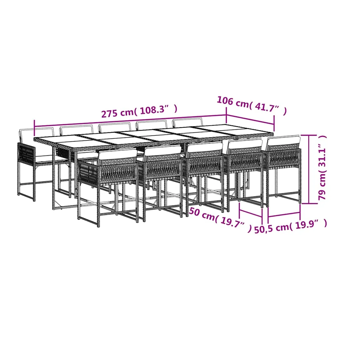 - Dimensions : 275 x 106 x 73 cm (L x l x H)