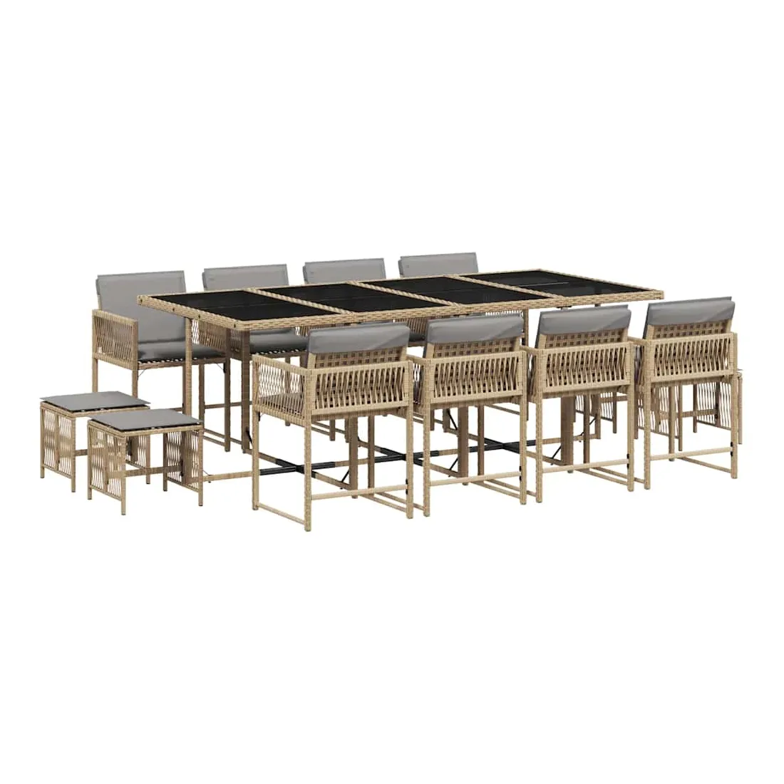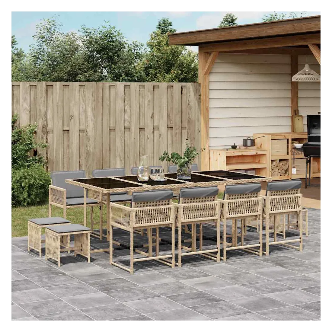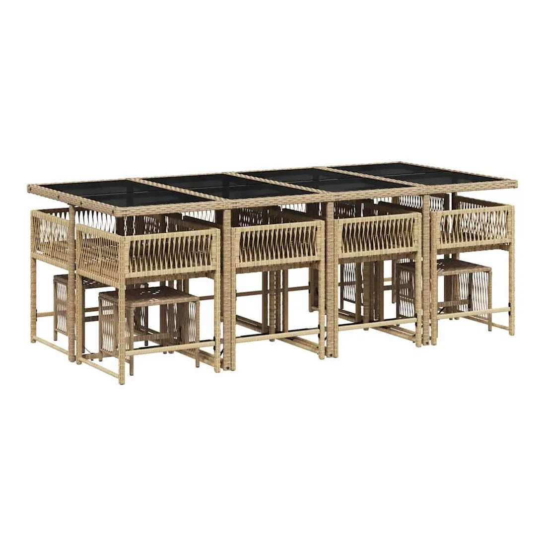 Cet ensemble de salle à manger de jardin est un excellent choix pour les repas en plein air ou pour vous détendre dans le jardin, dans l'arrière-cour ou sur la terrasse. Matériau durable : la résine tressée, également connue sous le nom de poly rotin, est un matériau synthétique solide et nécessitant peu d'entretien qui ressemble au rotin naturel. Il est léger, facile à nettoyer et couramment utilisé pour les meubles d'extérieur en raison de sa durabilité et de ses propriétés de résistance aux intempéries.Rangement compact : ces chaises sont dotées d'un dossier rabattable, ce qui permet de les ranger facilement sous la table. Une fois pliées, elles se rangent parfaitement sous la table, formant un cube peu encombrant. De plus, les tabourets peuvent également être rangés sous les chaises, maximisant encore davantage l'efficacité de l'espace.Expérience d'assise confortable : ce mobilier d'extérieur, doté de coussins épais, offre une expérience d'assise confortable.Housse amovible et lavable : ces coussins de siège sont dotés de housses amovibles pour un lavage et un entretien faciles. Les housses de coussin ont un rabat à l'arrière pour une fixation facile aux dossiers.Dessus en verre : le dessus de la table d'extérieur est fabriqué en verre trempé solide et durable, ce qui le rend facile à nettoyer avec un chiffon humide et ajoute une touche d'élégance à votre espace extérieur. Bon à savoir :Pour que vos meubles d'extérieur restent beaux, nous vous recommandons de les protéger avec une housse imperméable.