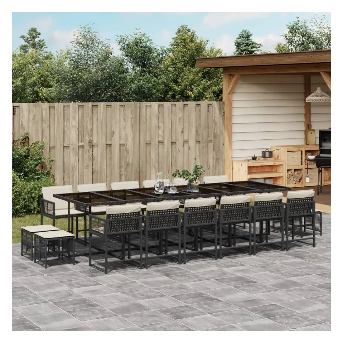 Cet ensemble de salle à manger de jardin est un excellent choix pour les repas en plein air ou pour vous détendre dans le jardin, dans l'arrière-cour ou sur la terrasse. Matériau durable : la résine tressée, également connue sous le nom de poly rotin, est un matériau synthétique solide et nécessitant peu d'entretien qui ressemble au rotin naturel. Il est léger, facile à nettoyer et couramment utilisé pour les meubles d'extérieur en raison de sa durabilité et de ses propriétés de résistance aux intempéries.Rangement compact : ces chaises sont dotées d'un dossier rabattable, ce qui permet de les ranger facilement sous la table. Une fois pliées, elles se rangent parfaitement sous la table, formant un cube peu encombrant. De plus, les tabourets peuvent également être rangés sous les chaises, maximisant encore davantage l'efficacité de l'espace.Expérience d'assise confortable : ce mobilier d'extérieur, doté de coussins épais, offre une expérience d'assise confortable.Housse amovible et lavable : ces coussins de siège sont dotés de housses amovibles pour un lavage et un entretien faciles. Les housses de coussin ont un rabat à l'arrière pour une fixation facile aux dossiers.Dessus en verre : le dessus de la table d'extérieur est fabriqué en verre trempé solide et durable, ce qui le rend facile à nettoyer avec un chiffon humide et ajoute une touche d'élégance à votre espace extérieur. Bon à savoir :Pour que vos meubles d'extérieur restent beaux, nous vous recommandons de les protéger avec une housse imperméable.