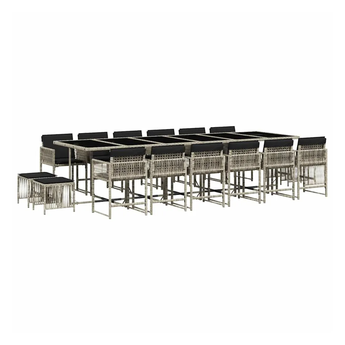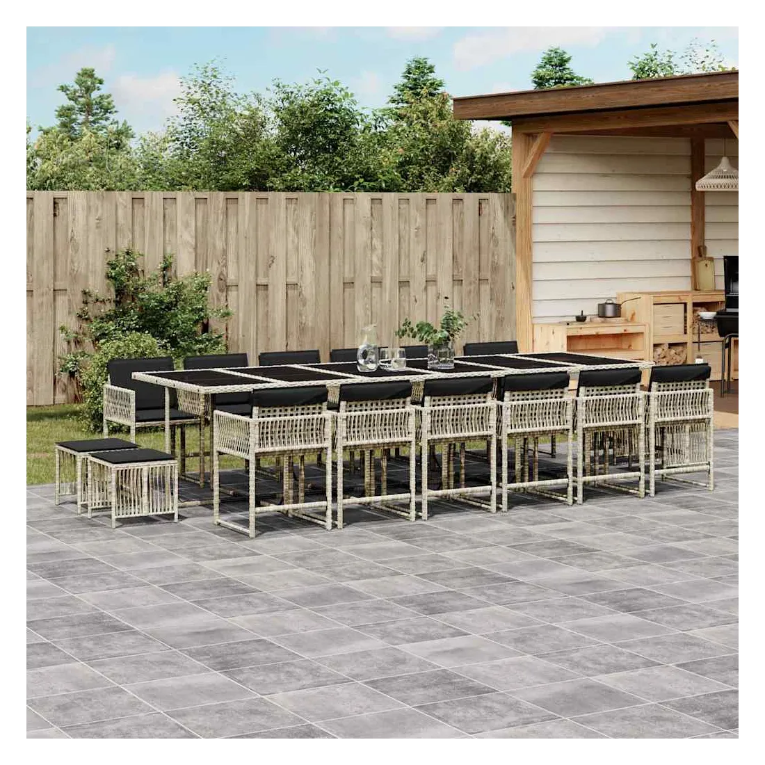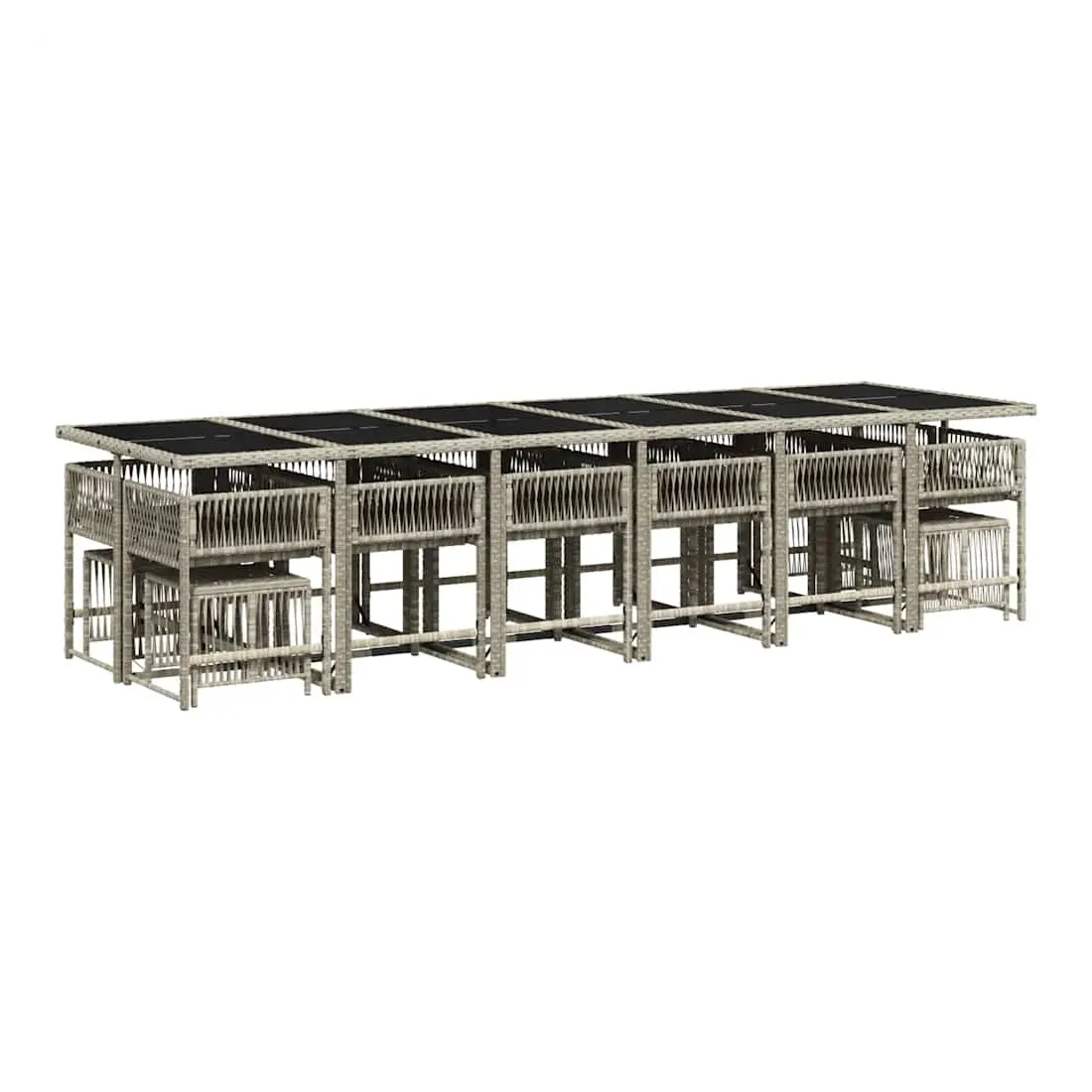 Cet ensemble de salle à manger de jardin est un excellent choix pour les repas en plein air ou pour vous détendre dans le jardin, dans l'arrière-cour ou sur la terrasse. Matériau durable : la résine tressée, également connue sous le nom de poly rotin, est un matériau synthétique solide et nécessitant peu d'entretien qui ressemble au rotin naturel. Il est léger, facile à nettoyer et couramment utilisé pour les meubles d'extérieur en raison de sa durabilité et de ses propriétés de résistance aux intempéries.Rangement compact : ces chaises sont dotées d'un dossier rabattable, ce qui permet de les ranger facilement sous la table. Une fois pliées, elles se rangent parfaitement sous la table, formant un cube peu encombrant. De plus, les tabourets peuvent également être rangés sous les chaises, maximisant encore davantage l'efficacité de l'espace.Expérience d'assise confortable : ce mobilier d'extérieur, doté de coussins épais, offre une expérience d'assise confortable.Housse amovible et lavable : ces coussins de siège sont dotés de housses amovibles pour un lavage et un entretien faciles. Les housses de coussin ont un rabat à l'arrière pour une fixation facile aux dossiers.Dessus en verre : le dessus de la table d'extérieur est fabriqué en verre trempé solide et durable, ce qui le rend facile à nettoyer avec un chiffon humide et ajoute une touche d'élégance à votre espace extérieur. Bon à savoir :Pour que vos meubles d'extérieur restent beaux, nous vous recommandons de les protéger avec une housse imperméable.