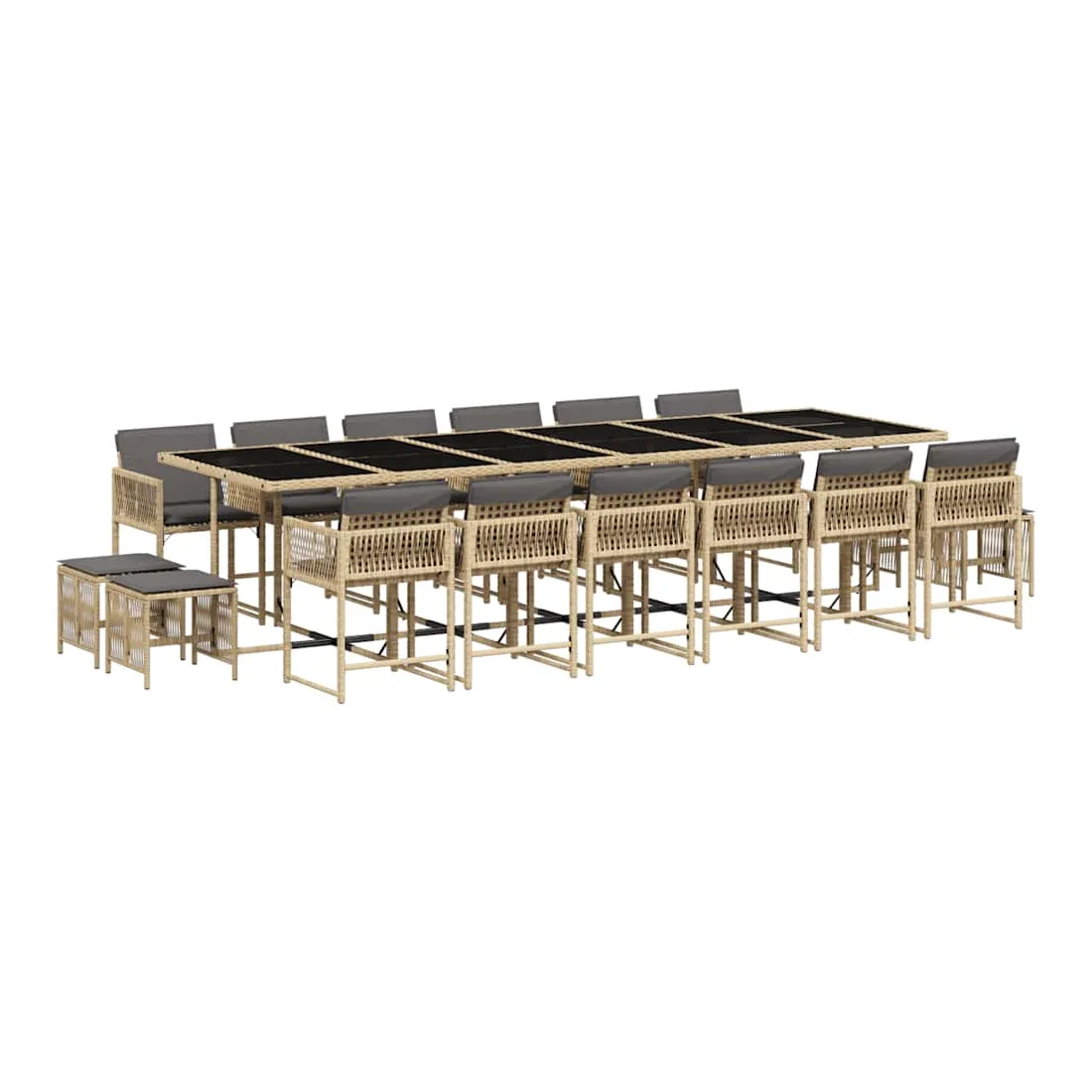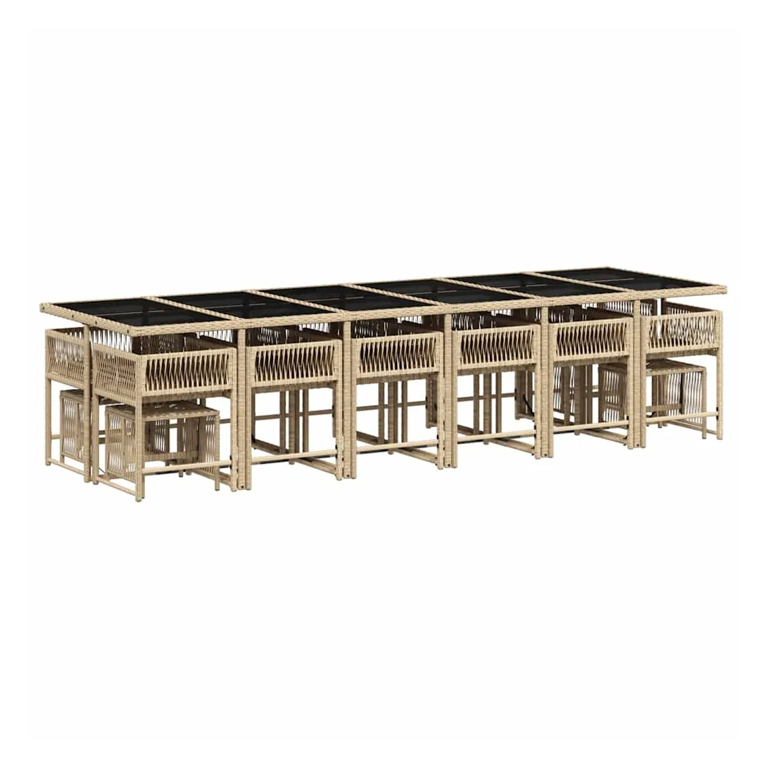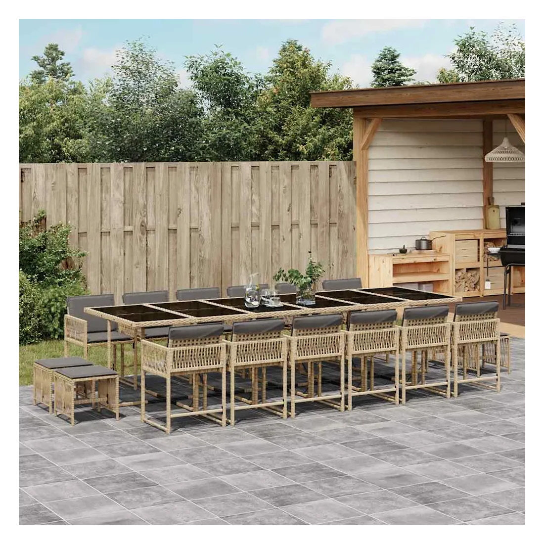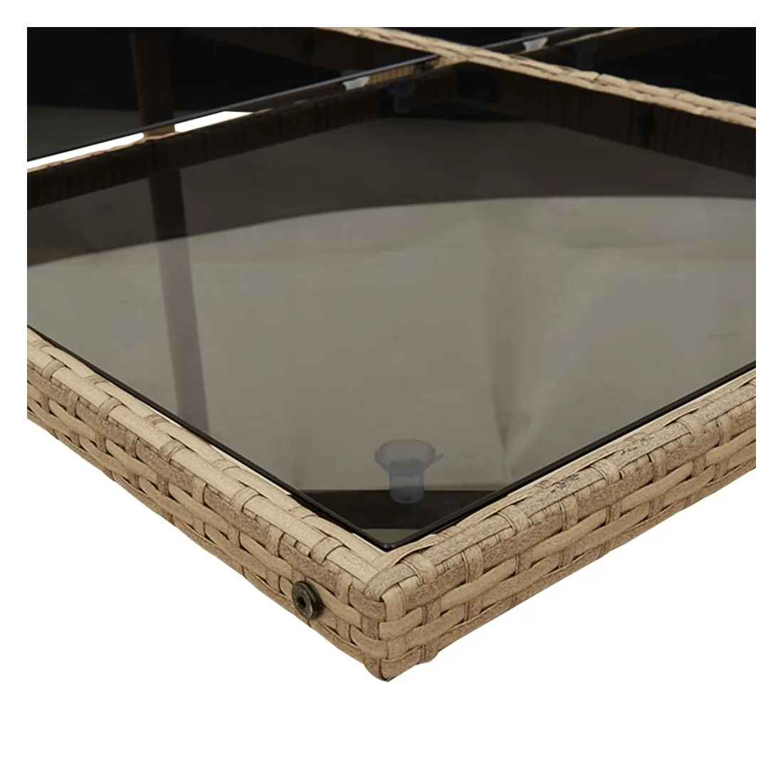 Cet ensemble de salle à manger de jardin est un excellent choix pour les repas en plein air ou pour vous détendre dans le jardin, dans l'arrière-cour ou sur la terrasse. Matériau durable : la résine tressée, également connue sous le nom de poly rotin, est un matériau synthétique solide et nécessitant peu d'entretien qui ressemble au rotin naturel. Il est léger, facile à nettoyer et couramment utilisé pour les meubles d'extérieur en raison de sa durabilité et de ses propriétés de résistance aux intempéries.Rangement compact : ces chaises sont dotées d'un dossier rabattable, ce qui permet de les ranger facilement sous la table. Une fois pliées, elles se rangent parfaitement sous la table, formant un cube peu encombrant. De plus, les tabourets peuvent également être rangés sous les chaises, maximisant encore davantage l'efficacité de l'espace.Expérience d'assise confortable : ce mobilier d'extérieur, doté de coussins épais, offre une expérience d'assise confortable.Housse amovible et lavable : ces coussins de siège sont dotés de housses amovibles pour un lavage et un entretien faciles. Les housses de coussin ont un rabat à l'arrière pour une fixation facile aux dossiers.Dessus en verre : le dessus de la table d'extérieur est fabriqué en verre trempé solide et durable, ce qui le rend facile à nettoyer avec un chiffon humide et ajoute une touche d'élégance à votre espace extérieur. Bon à savoir :Pour que vos meubles d'extérieur restent beaux, nous vous recommandons de les protéger avec une housse imperméable.