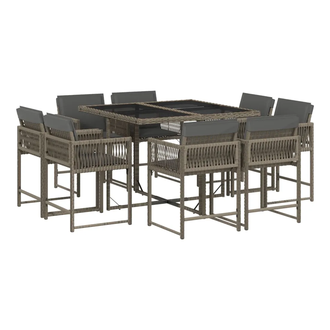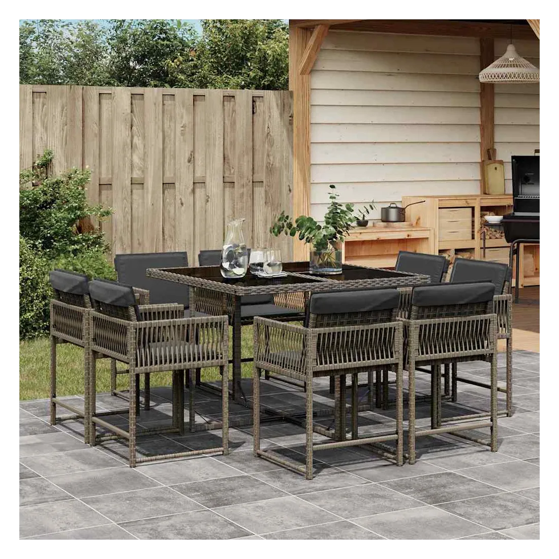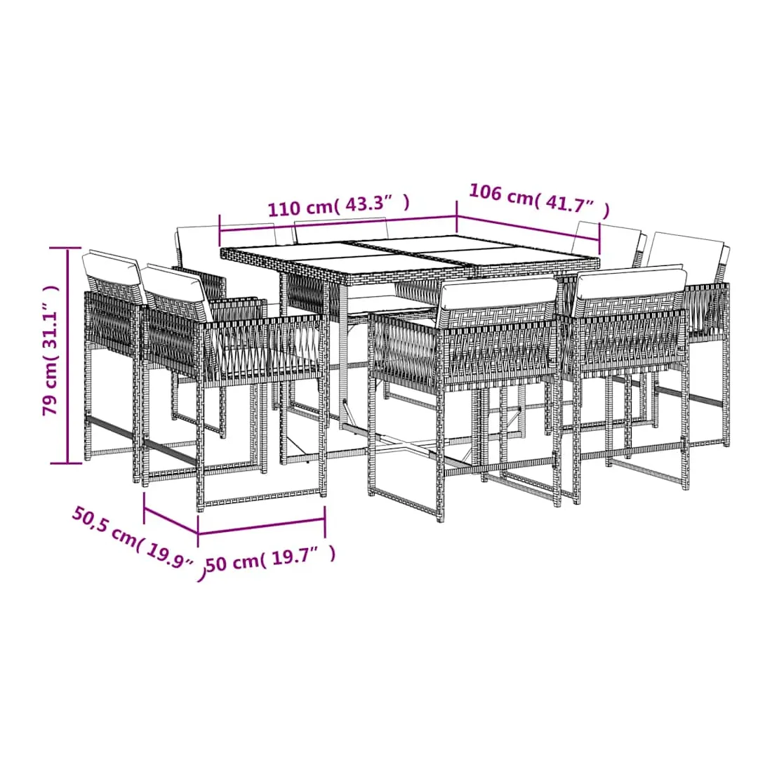 Cet ensemble de salle à manger de jardin est un excellent choix pour les repas en plein air ou pour vous détendre dans le jardin, dans l'arrière-cour ou sur la terrasse. Matériau durable : la résine tressée, également connue sous le nom de poly rotin, est un matériau synthétique solide et nécessitant peu d'entretien qui ressemble au rotin naturel. Il est léger, facile à nettoyer et couramment utilisé pour les meubles d'extérieur en raison de sa durabilité et de ses propriétés de résistance aux intempéries.Rangement compact : ces chaises sont dotées d'un dossier rabattable, ce qui permet de les ranger facilement sous la table. Une fois pliées, elles se rangent parfaitement sous la table, formant un cube peu encombrant.Expérience d'assise confortable : ce mobilier d'extérieur, doté de coussins épais, offre une expérience d'assise confortable.Housse amovible et lavable : ces coussins de siège sont dotés de housses amovibles pour un lavage et un entretien faciles. Les housses de coussin ont un rabat à l'arrière pour une fixation facile aux dossiers.Dessus en verre : le dessus de la table d'extérieur est fabriqué en verre trempé solide et durable, ce qui le rend facile à nettoyer avec un chiffon humide et ajoute une touche d'élégance à votre espace extérieur. Bon à savoir :Pour que vos meubles d'extérieur restent beaux, nous vous recommandons de les protéger avec une housse imperméable.