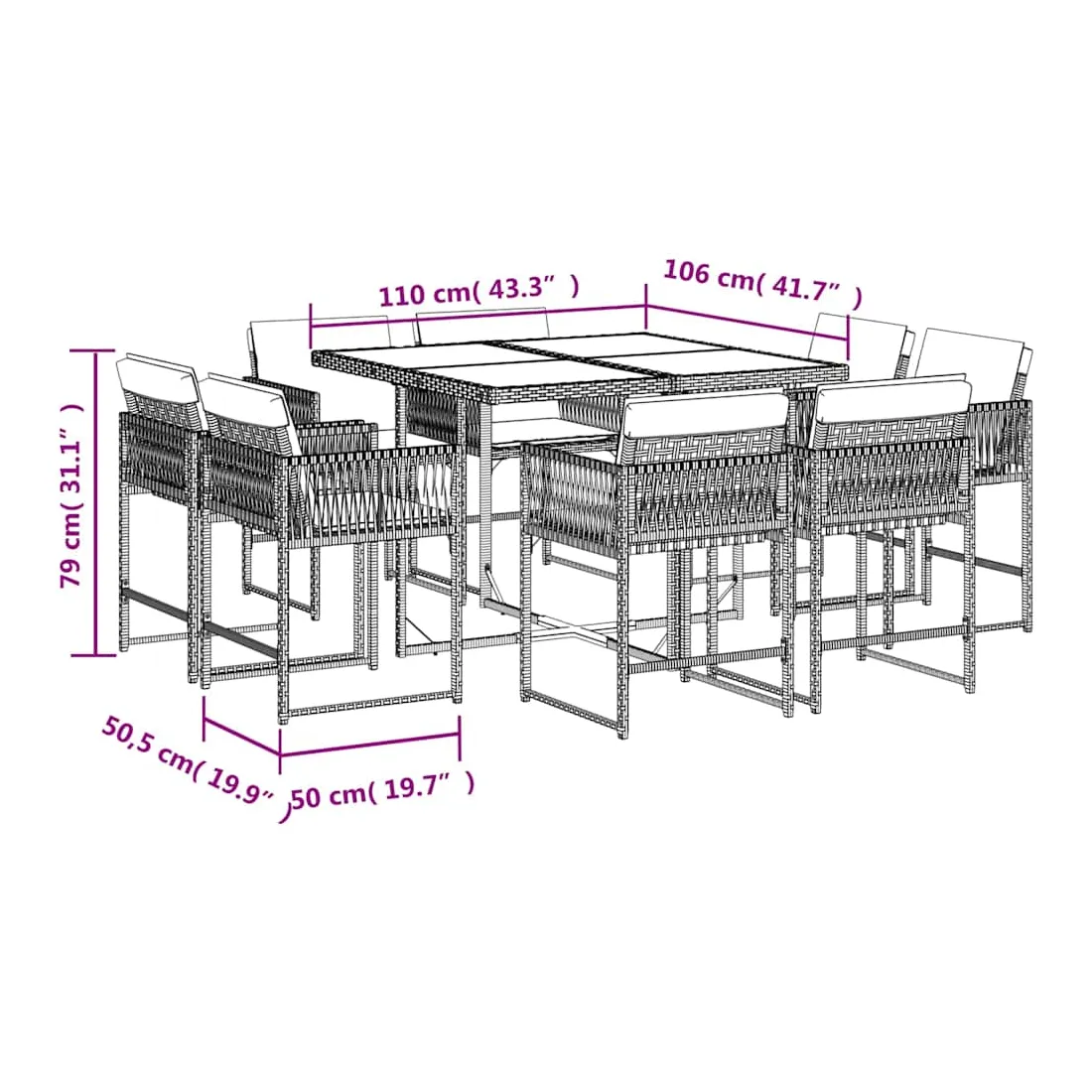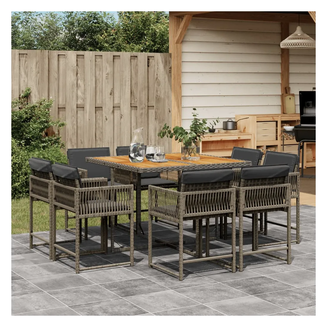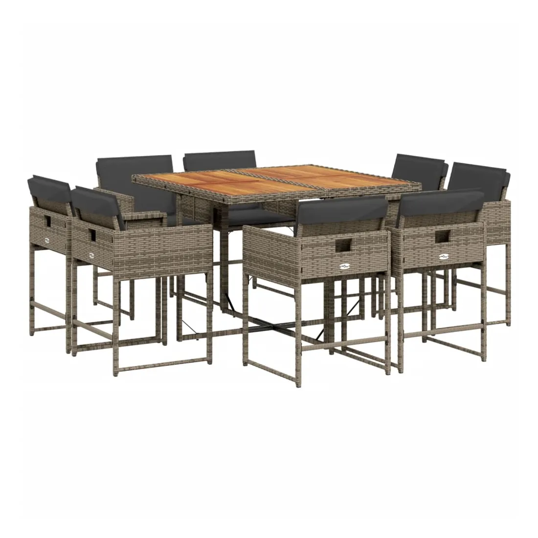 Cet ensemble de salle à manger de jardin est un excellent choix pour les repas en plein air ou pour vous détendre dans le jardin, dans l'arrière-cour ou sur la terrasse. Matériau durable : la résine tressée, également connue sous le nom de poly rotin, est un matériau synthétique solide et nécessitant peu d'entretien qui ressemble au rotin naturel. Il est léger, facile à nettoyer et couramment utilisé pour les meubles d'extérieur en raison de sa durabilité et de ses propriétés de résistance aux intempéries.Rangement compact : ces chaises sont dotées d'un dossier rabattable, ce qui permet de les ranger facilement sous la table. Une fois pliées, elles se rangent parfaitement sous la table, formant un cube peu encombrant.Expérience d'assise confortable : ce mobilier d'extérieur, doté de coussins épais, offre une expérience d'assise confortable.Housse amovible et lavable : ces coussins de siège sont dotés de housses amovibles pour un lavage et un entretien faciles. Les housses de coussin ont un rabat à l'arrière pour une fixation facile aux dossiers.Dessus stable et facile à nettoyer : cette table de jardin a un dessus en bois d'acacia robuste, durable et facile à nettoyer avec un chiffon humide. Bon à savoir :Pour que vos meubles d'extérieur restent beaux, nous vous recommandons de les protéger avec une housse imperméable.
