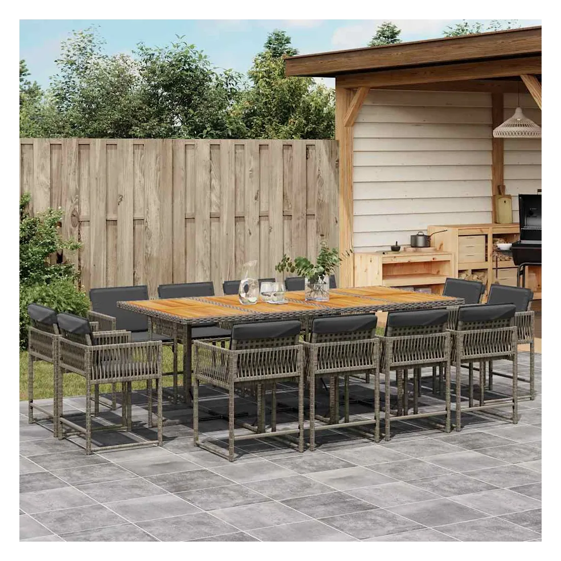 - Matériau : résine tressée, acier enduit de poudre, bois d'acacia massif