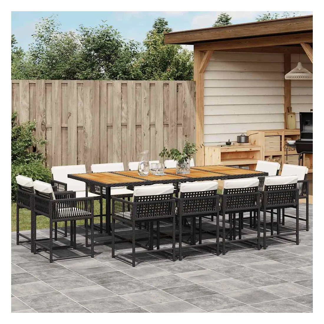 Ensemble à manger de jardin 13 pcs coussins noir résine tressée
