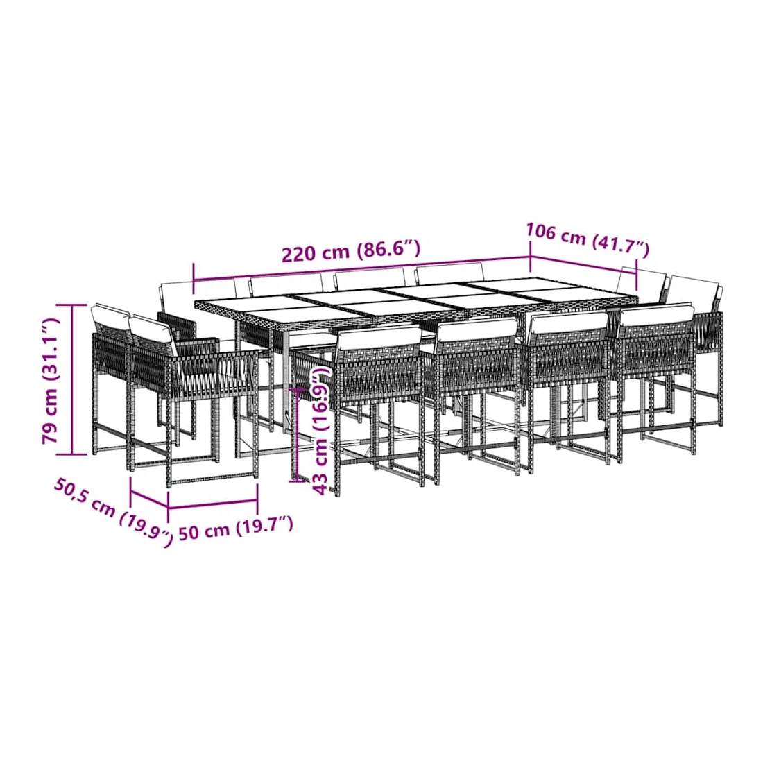 - Dimensions : 220 x 106 x 73 cm (L x l x H)