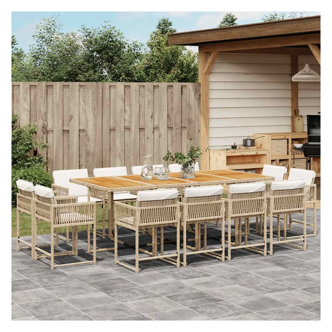 Cet ensemble de salle à manger de jardin est un excellent choix pour les repas en plein air ou pour vous détendre dans le jardin, dans l'arrière-cour ou sur la terrasse. Matériau durable : la résine tressée, également connue sous le nom de poly rotin, est un matériau synthétique solide et nécessitant peu d'entretien qui ressemble au rotin naturel. Il est léger, facile à nettoyer et couramment utilisé pour les meubles d'extérieur en raison de sa durabilité et de ses propriétés de résistance aux intempéries.Rangement compact : ces chaises sont dotées d'un dossier rabattable, ce qui permet de les ranger facilement sous la table. Une fois pliées, elles se rangent parfaitement sous la table, formant un cube peu encombrant.Expérience d'assise confortable : ce mobilier d'extérieur, doté de coussins épais, offre une expérience d'assise confortable.Housse amovible et lavable : ces coussins de siège sont dotés de housses amovibles pour un lavage et un entretien faciles. Les housses de coussin ont un rabat à l'arrière pour une fixation facile aux dossiers.Dessus stable et facile à nettoyer : cette table de jardin a un dessus en bois d'acacia robuste, durable et facile à nettoyer avec un chiffon humide. Bon à savoir :Pour que vos meubles d'extérieur restent beaux, nous vous recommandons de les protéger avec une housse imperméable.