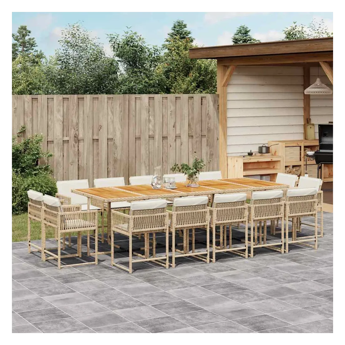 - Matériau : résine tressée, acier enduit de poudre, bois d'acacia massif