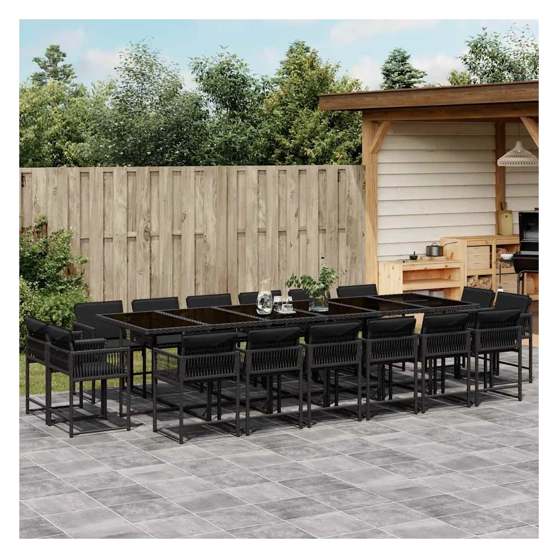 Cet ensemble de salle à manger de jardin est un excellent choix pour les repas en plein air ou pour vous détendre dans le jardin, dans l'arrière-cour ou sur la terrasse. Matériau durable : la résine tressée, également connue sous le nom de poly rotin, est un matériau synthétique solide et nécessitant peu d'entretien qui ressemble au rotin naturel. Il est léger, facile à nettoyer et couramment utilisé pour les meubles d'extérieur en raison de sa durabilité et de ses propriétés de résistance aux intempéries.Rangement compact : ces chaises sont dotées d'un dossier rabattable, ce qui permet de les ranger facilement sous la table. Une fois pliées, elles se rangent parfaitement sous la table, formant un cube peu encombrant.Expérience d'assise confortable : ce mobilier d'extérieur, doté de coussins épais, offre une expérience d'assise confortable.Housse amovible et lavable : ces coussins de siège sont dotés de housses amovibles pour un lavage et un entretien faciles. Les housses de coussin ont un rabat à l'arrière pour une fixation facile aux dossiers.Dessus en verre : le dessus de la table d'extérieur est fabriqué en verre trempé solide et durable, ce qui le rend facile à nettoyer avec un chiffon humide et ajoute une touche d'élégance à votre espace extérieur. Bon à savoir :Pour que vos meubles d'extérieur restent beaux, nous vous recommandons de les protéger avec une housse imperméable.