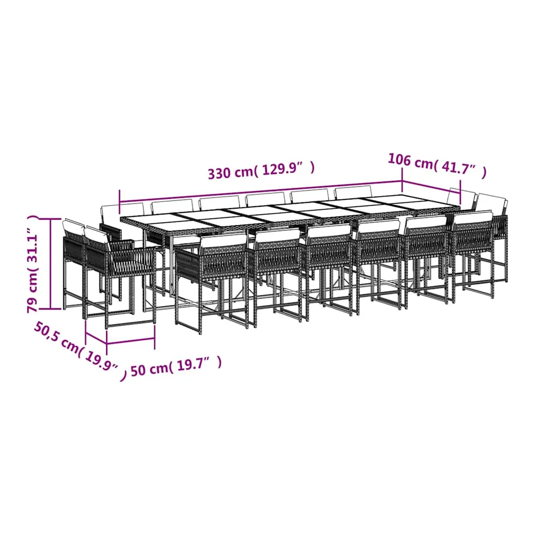 - Dimensions : 330 x 106 x 73 cm (L x l x H)