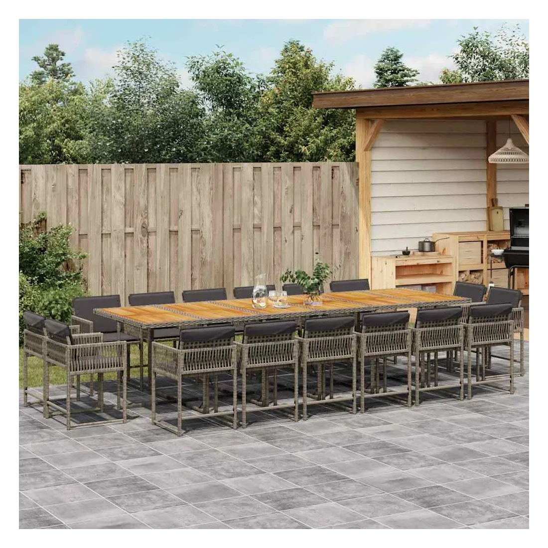 Cet ensemble de salle à manger de jardin est un excellent choix pour les repas en plein air ou pour vous détendre dans le jardin, dans l'arrière-cour ou sur la terrasse. Matériau durable : la résine tressée, également connue sous le nom de poly rotin, est un matériau synthétique solide et nécessitant peu d'entretien qui ressemble au rotin naturel. Il est léger, facile à nettoyer et couramment utilisé pour les meubles d'extérieur en raison de sa durabilité et de ses propriétés de résistance aux intempéries.Rangement compact : ces chaises sont dotées d'un dossier rabattable, ce qui permet de les ranger facilement sous la table. Une fois pliées, elles se rangent parfaitement sous la table, formant un cube peu encombrant.Expérience d'assise confortable : ce mobilier d'extérieur, doté de coussins épais, offre une expérience d'assise confortable.Housse amovible et lavable : ces coussins de siège sont dotés de housses amovibles pour un lavage et un entretien faciles. Les housses de coussin ont un rabat à l'arrière pour une fixation facile aux dossiers.Dessus stable et facile à nettoyer : cette table de jardin a un dessus en bois d'acacia robuste, durable et facile à nettoyer avec un chiffon humide. Bon à savoir :Pour que vos meubles d'extérieur restent beaux, nous vous recommandons de les protéger avec une housse imperméable.
