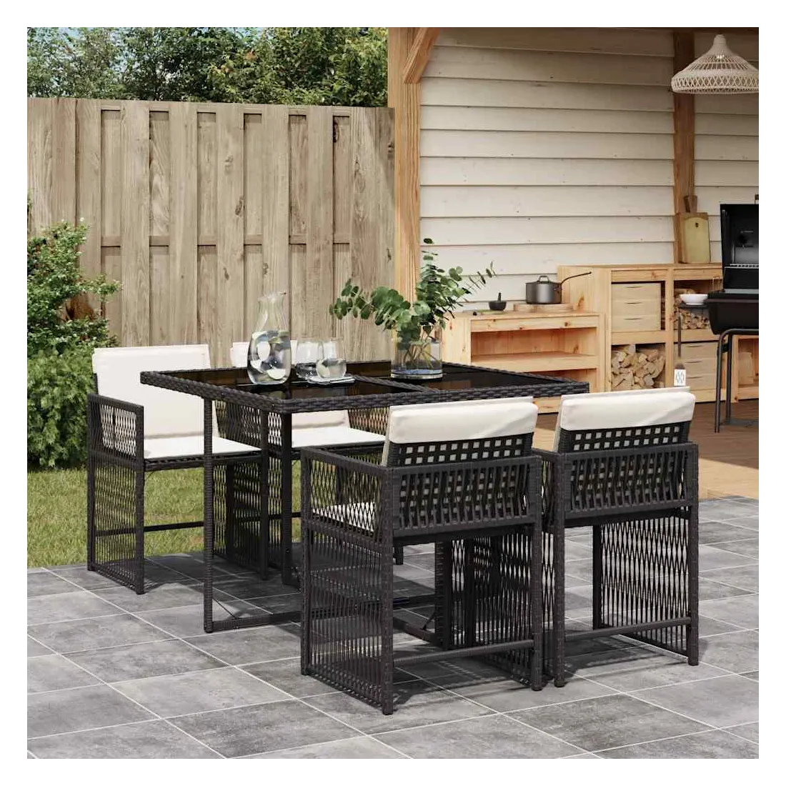Cet ensemble de salle à manger de jardin est un excellent choix pour les repas en plein air ou pour vous détendre dans le jardin, l'arrière-cour ou le patio. Matériau durable : la résine tressée, également connue sous le nom de poly rotin, est un matériau synthétique solide et nécessitant peu d'entretien qui ressemble au rotin naturel. Il est léger, facile à nettoyer et couramment utilisé pour les meubles d'extérieur en raison de sa durabilité et de ses propriétés de résistance aux intempéries.Rangement compact : ces chaises sont dotées d'un dossier rabattable, ce qui permet de les ranger facilement sous la table. Une fois pliées, elles se rangent parfaitement sous la table, formant un cube peu encombrant.Expérience d'assise confortable : ce mobilier d'extérieur, doté de coussins épais, offre une expérience d'assise confortable.Housse amovible et lavable : ces coussins de siège sont dotés de housses amovibles pour un lavage et un entretien faciles. Les housses de coussin ont un rabat à l'arrière pour une fixation facile aux dossiers.Dessus en verre : le dessus de la table d'extérieur est fabriqué en verre trempé solide et durable, ce qui le rend facile à nettoyer avec un chiffon humide et ajoute une touche d'élégance à votre espace extérieur. Bon à savoir :Pour que vos meubles d'extérieur restent beaux, nous vous recommandons de les protéger avec une housse imperméable.