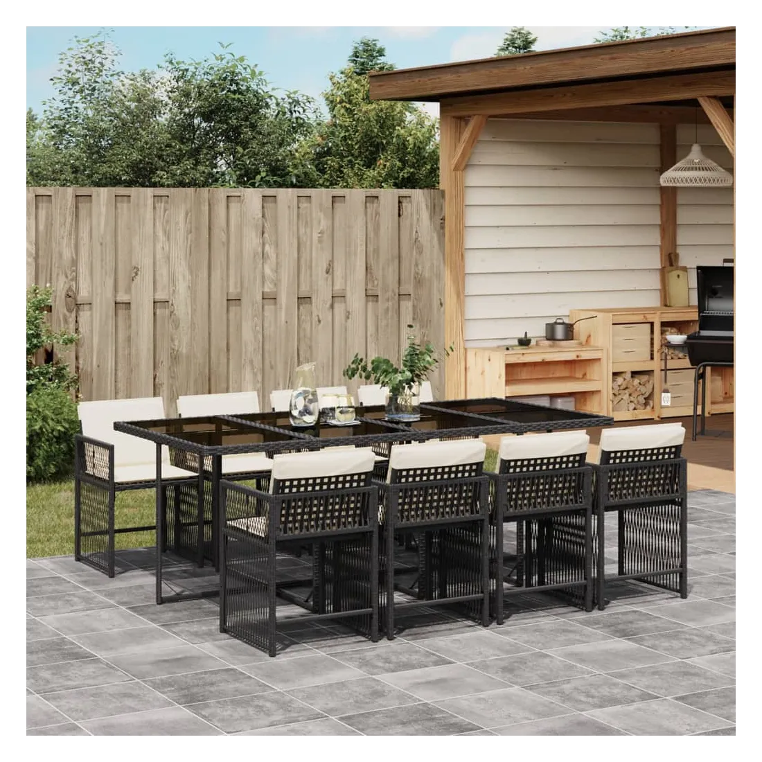 Cet ensemble de salle à manger de jardin est un excellent choix pour les repas en plein air ou pour vous détendre dans le jardin, l'arrière-cour ou le patio. Matériau durable : la résine tressée, également connue sous le nom de poly rotin, est un matériau synthétique solide et nécessitant peu d'entretien qui ressemble au rotin naturel. Il est léger, facile à nettoyer et couramment utilisé pour les meubles d'extérieur en raison de sa durabilité et de ses propriétés de résistance aux intempéries.Rangement compact : ces chaises sont dotées d'un dossier rabattable, ce qui permet de les ranger facilement sous la table. Une fois pliées, elles se rangent parfaitement sous la table, formant un cube peu encombrant.Expérience d'assise confortable : ce mobilier d'extérieur, doté de coussins épais, offre une expérience d'assise confortable.Housse amovible et lavable : ces coussins de siège sont dotés de housses amovibles pour un lavage et un entretien faciles. Les housses de coussin ont un rabat à l'arrière pour une fixation facile aux dossiers.Dessus en verre : le dessus de la table d'extérieur est fabriqué en verre trempé solide et durable, ce qui le rend facile à nettoyer avec un chiffon humide et ajoute une touche d'élégance à votre espace extérieur. Bon à savoir :Pour que vos meubles d'extérieur restent beaux, nous vous recommandons de les protéger avec une housse imperméable.